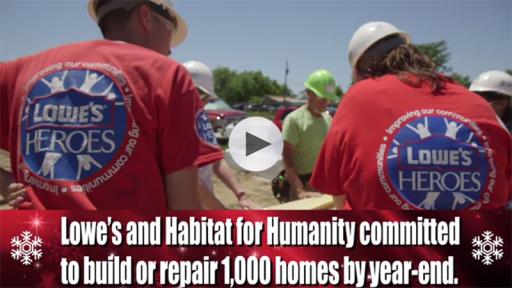 PR Newswire, FORT WORTH, Texas (Dec. 6, 2016) — This holiday season will be particularly special for more than 1,000 families, many of whom will - for the first time - be able to create memories in their own homes. Throughout 2016, longtime partners Lowe’s and Habitat for Humanity have worked toward a yearlong goal to build or repair 1,000 homes alongside families across the U.S. to help them realize their dreams of safe, affordable homeownership.