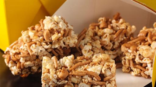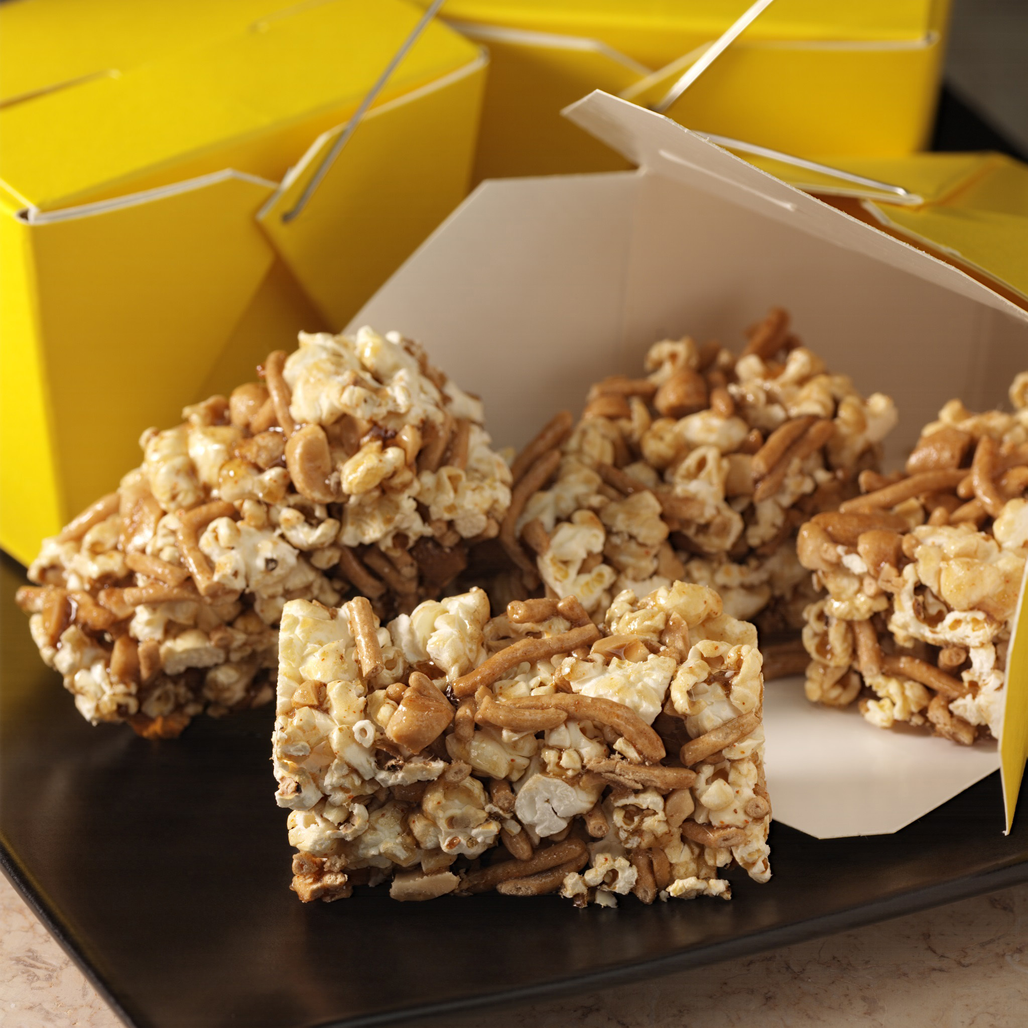 Kung Pao Pop: For the more adventurous snackers, Kung Pao Crunch Bars combine the whole-grain goodness of microwave popcorn with a unique Asian flair. This easy-to-prepare recipe calls for fresh-popped microwave popcorn, Chow Mein noodles, sesame oil and red pepper.