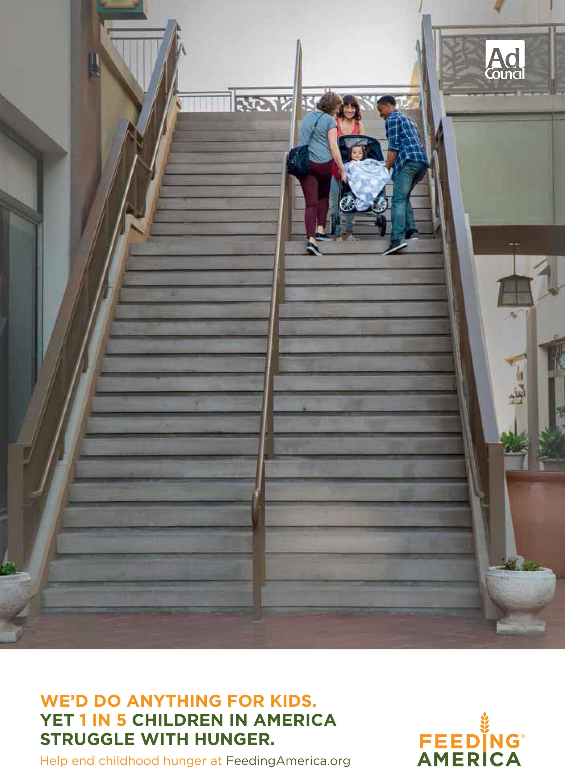 “With so many people willing and ready to help children, it is difficult to grasp the fact that one in five children in America struggle with hunger. We’re proud to partner with Feeding America to reduce hunger by showing just how easy it is to help. Our hope is that these new PSAs showcasing strangers doing good deeds for children will drive home the huge impact small acts can have,” shares Lisa Sherman, President and CEO of Ad Council.