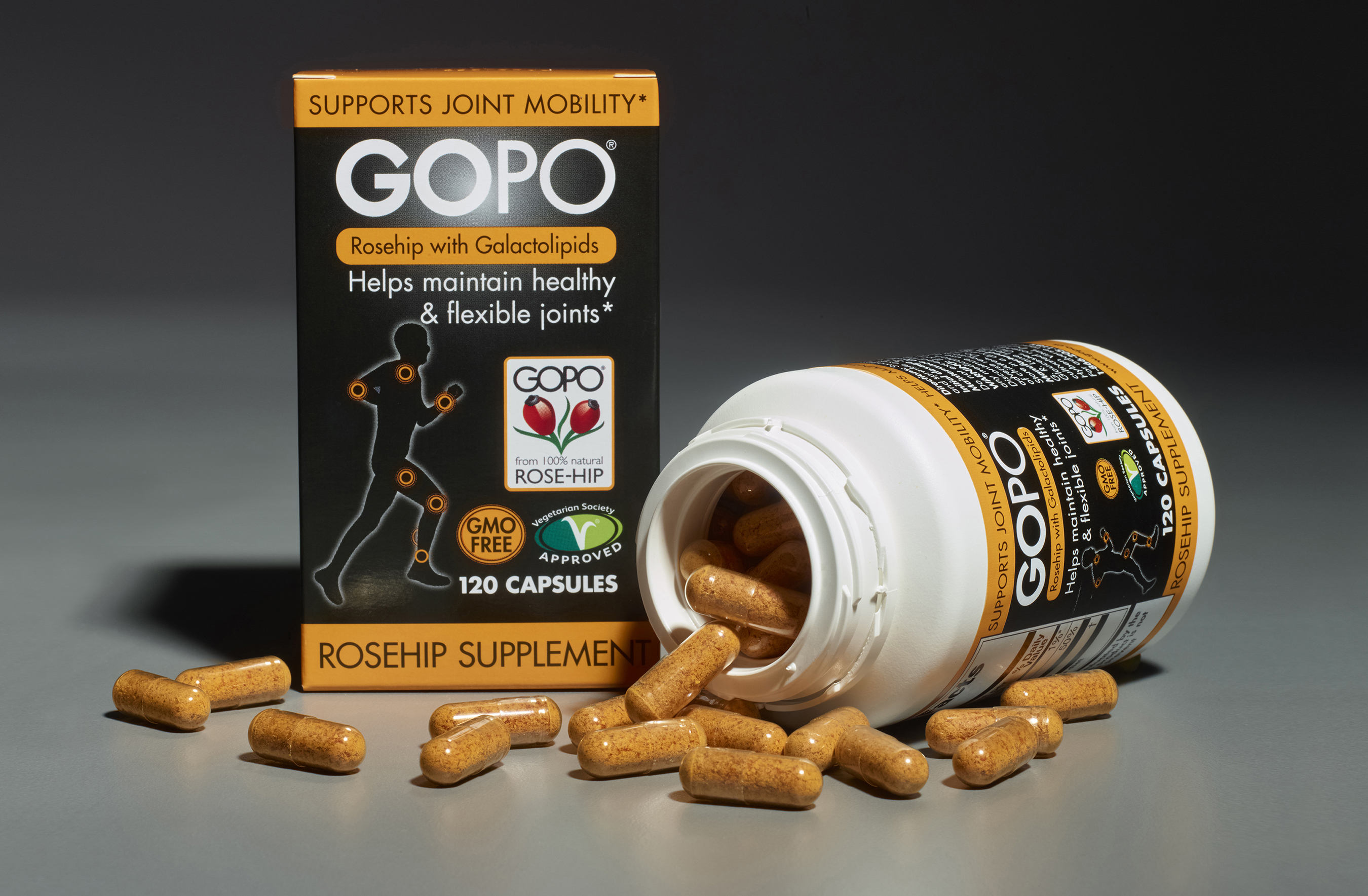 GOPO® Rosehip with Galactolipids, a natural, plant-based joint care supplement clinically proven to support joint health, the natural supplement is gaining traction and helping millions who suffer joint pain due to age, sports injuries, etc. Used extensively in Europe, GOPO is now available in the U.S. and proven effective in supporting long-term joint mobility and cartilage care.