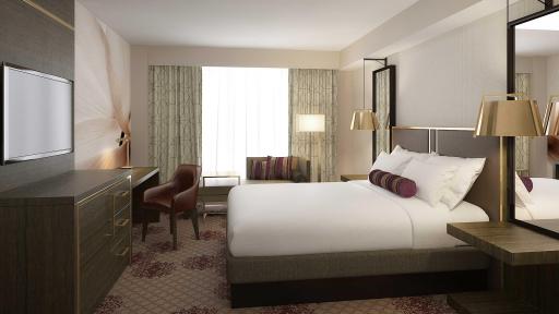 Influenced by the opulence of Eldorado, the mythical South American City of Gold, the design of new guestrooms at Eldorado Resort Casino reflects a refined and luxurious aesthetic. From elegant walls that feature a large abstract floral pattern to muted wall tones, punctuated by furnishings in walnut woods with gold accents, each room will offer a distinguished guest experience, which continues into the bathrooms, where new vanities, lighted mirrors, flooring and showers will create a spa-like setting.