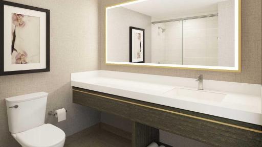 Inspired by the Silver Legacy’s vibrant, hip and happening atmosphere, all guest bathrooms will be updated with rich, modern accessories, to complement the plush carpeting and fine linen beds in Silver Legacy’s discerning guestrooms. New bathrooms will feature soothing furnishings reminiscent of the breathtaking views of the Sierra Nevada Mountains.