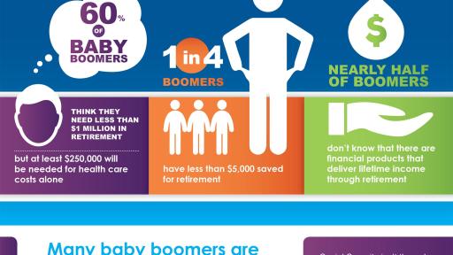 - 60 percent of baby boomers think they need less than $1 million in retirement, when in reality at least a quarter of a million will be needed for health care costs alone