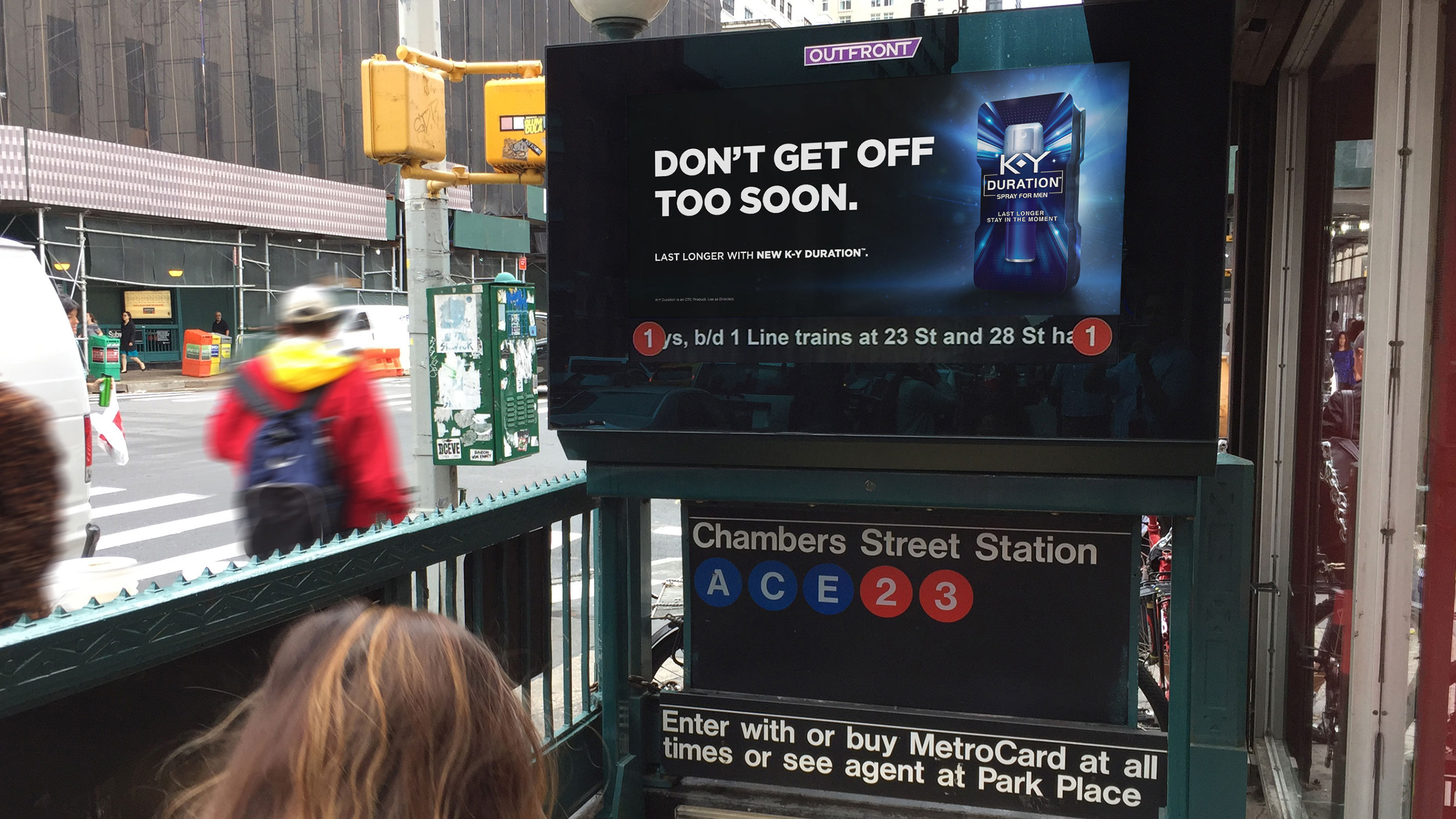 The launch efforts are rounded out with an extensive Out of Home push in key markets including New York City and Las Vegas. K-Y Duration billboards, subway ads, and taxi TVs will bring the message to life with contextually relevant lines like “Don’t Get Off Too Soon” and “Arrive on Time.”