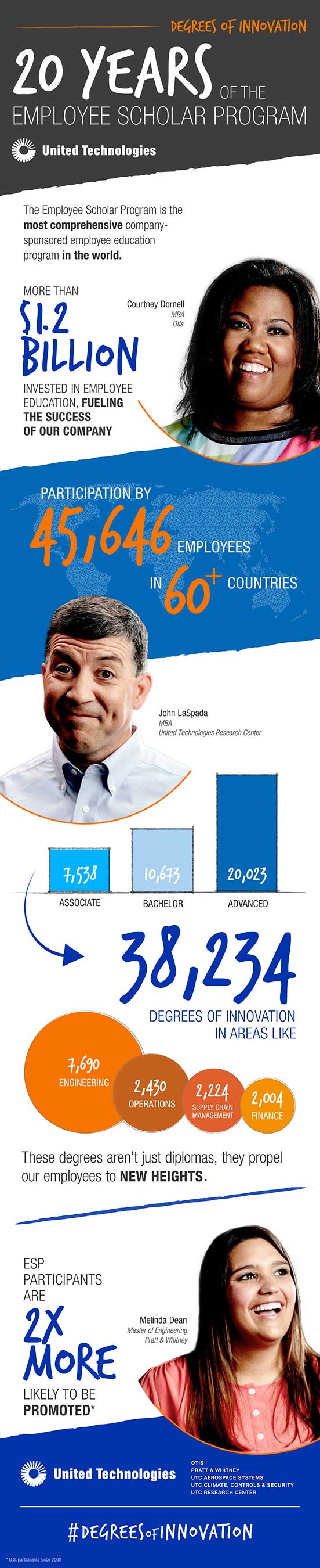To see more stories of how the Employee Scholar Program is turning dreams into reality, visit www.utc.com/ESP20. You can also follow the campaign using the hashtag #DegreesofInnovation.