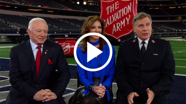 Jerry Jones and Charlotte Jones Anderson, along with The Salvation Army's National Commander, Commissioner David Jeffrey, kicked off the 2016 Red Kettle Campaign and celebrated 20 years of partnership with a satellite media tour at AT&T Stadium the day before Thanksgiving. The Dallas Cowboys also showcased the partnership and #RedKettleReason on national television just before a LIVE performance from country music star Eric Church during halftime of the Thanksgiving Day game. The campaign kickoff marked the 20th year the Cowboys organization has partnered with The Salvation Army to launch the iconic campaign during the nationally televised game. Since partnering with the team, the Red Kettle Campaign has raised nearly $2.2 billion.