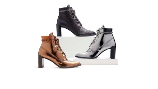 Hadid was inspired by the brand’s stellar boot reputation, but used her creative vision to put a unique, personal spin on the lace-up bootie silhouette. The Gigi Boot is set on a stacked heel, boasts bold metallic eyelets accented by duo-toned laces designed to wrap around the ankle and is finished with a detailed collar. The bootie is available in three materials, so there are multiple options for her style squad: a classic-yet-modern nero soft croco-calf leather and two shiny chic metallics, including iron specchio and copper glass. The bootie comes in a signature Gigi Hadid box and is available exclusively at Stuart Weitzman retail locations and global websites. The retail price is $565 for the metallic styles and $598 for the nero soft croco-calf version.