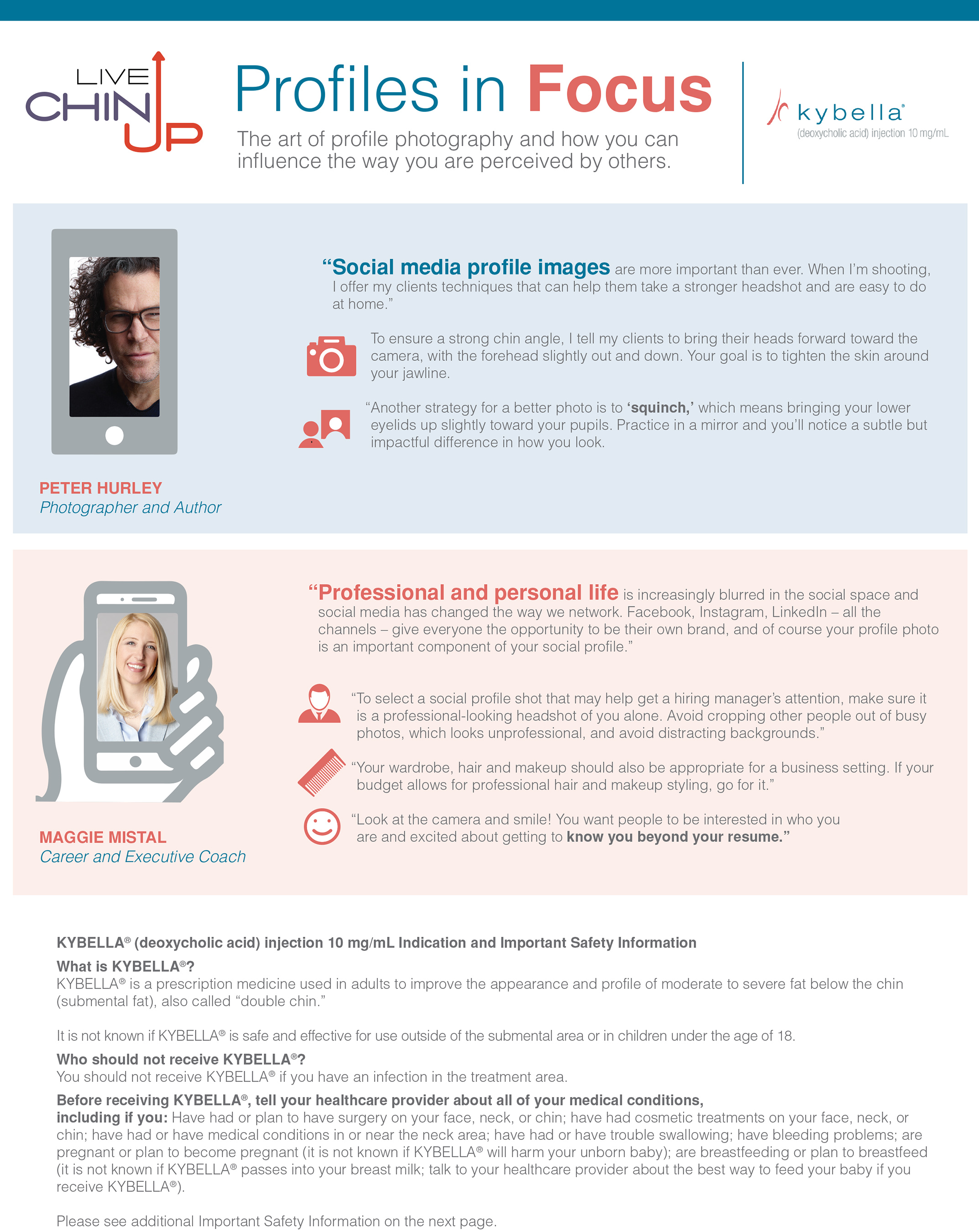 So to help men and women everywhere put their best profiles forward on social media, KYBELLA®, gathered a panel of profile experts to develop tips and tricks to help people improve their social media profile photos.