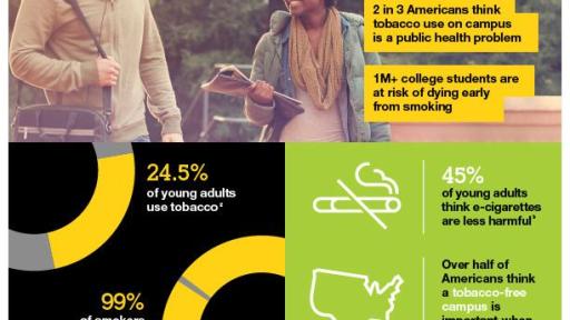 Over the next three years, the Tobacco-Free Generation Campus Initiative will award grants to a total of 125 colleges and universities throughout the U.S. with the greatest need for stronger tobacco prevention and control. The grants will help schools successfully advocate for, adopt and implement 100 percent smoke- and tobacco-free campus policies. Campuses will also receive technical assistance and resources to support their efforts with education, communications, cessation, and evaluation.