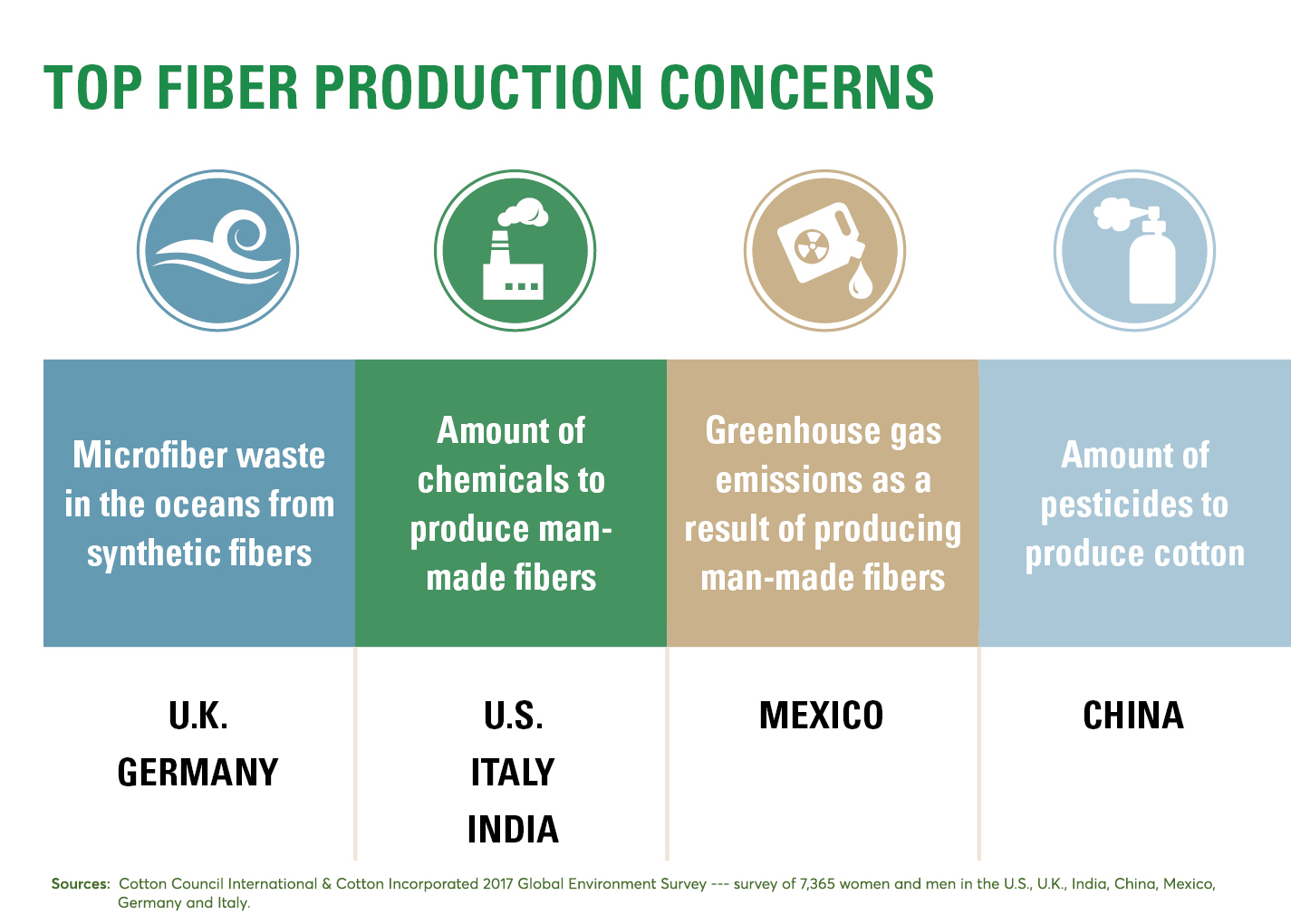 As sustainability becomes an increasingly important topic in the textile industry, so does the research that helps us better understand how end consumers think about sustainability. Cotton Incorporated and Cotton Council International (CCI) conducted a global survey of attitudes, motivations, and behaviors regarding sustainability among 7,300 consumers in the U.S., U.K., Mexico, India, Italy, and China. Questions explored how consumers define sustainability, what actions they take to improve the environment, when and how sustainability affects their purchases, and why they are motivated to act in sustainable ways. This research reveals the ways in which environmental concerns are important to consumer decision-making.