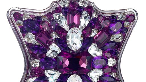 A sultry oud, accented with rose, musk, and tonka bean, its bottle enveloped in amethyst and purple crystals.