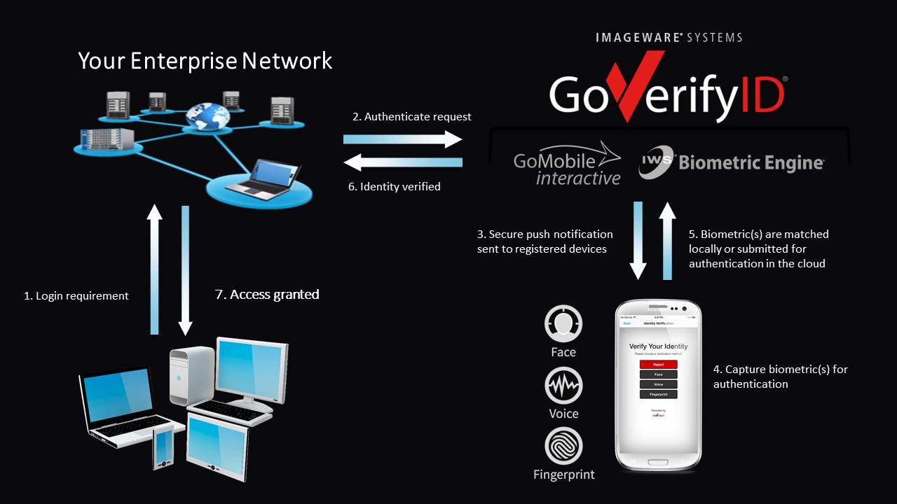 ImageWare Systems, Inc. (ImageWare) (OTCQB: IWSY), a leader in mobile and cloud-based, multi-modal biometric identity management solutions, today introduced GoVerifyID® Enterprise Suite, an innovative, multi-modal, multi-factor biometric authentication solution for the enterprise market. An algorithm-agnostic solution, GoVerifyID Enterprise Suite is the first ever end-to-end biometric platform that seamlessly integrates with an enterprise’s existing Microsoft infrastructure, offering businesses a turnkey biometric solution for quick deployment in an afternoon or less.