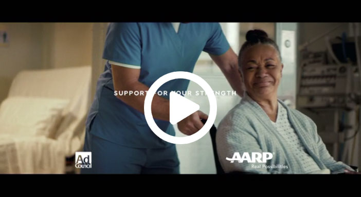 The PSAs encourage caregivers to find “support for your strength” from the Caregiving Resource Center at aarp.org/caregiving or by calling 1-877-333-5885. On the website, caregivers can access practical health and wellness tips and resources and can interact with a supportive community of peers.