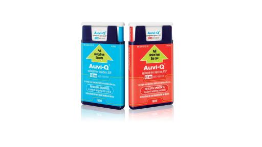 AUVI-Q is a FDA-approved prescription medicine used to treat life-threatening allergic reactions, including anaphylaxis, in people who are at risk for or have a history of serious allergic reactions. It is an epinephrine auto-injector with innovative features such as voice instructions that help guide a user with step-by-step instructions through the epinephrine delivery process and an automatic retractable needle system, a first for epinephrine auto-injectors, that injects the epinephrine and retracts the needle back into the device within seconds.