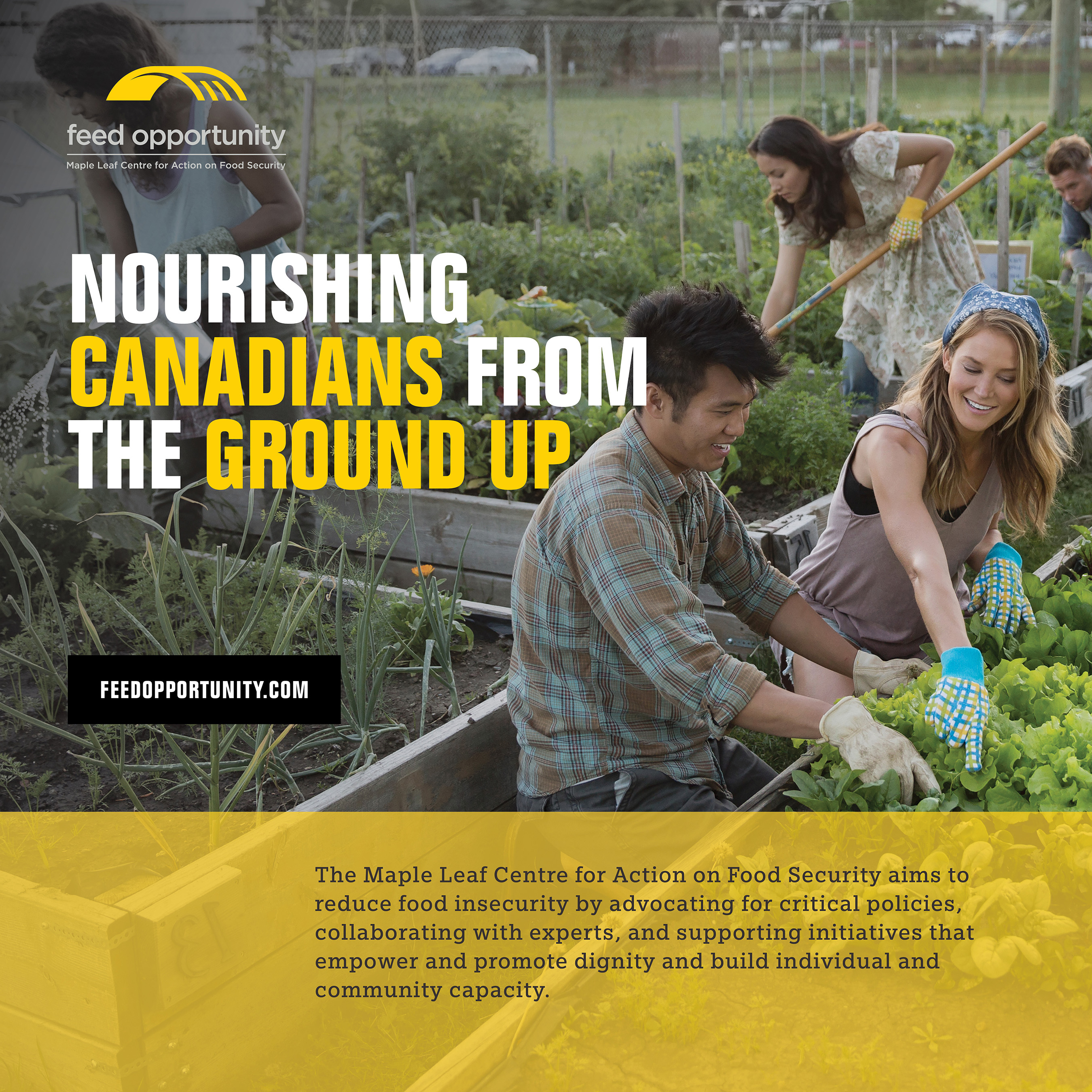 To increase public awareness of the issue of food insecurity in Canada, the Centre has launched a consumer social media awareness campaign entitled “4,000,000 Canadians”. The campaign features a short video, accessible on the Centre’s website and through social media platforms including Facebook.com/FeedOpportunity, Twitter.com/FeedOpportunity and YouTube.