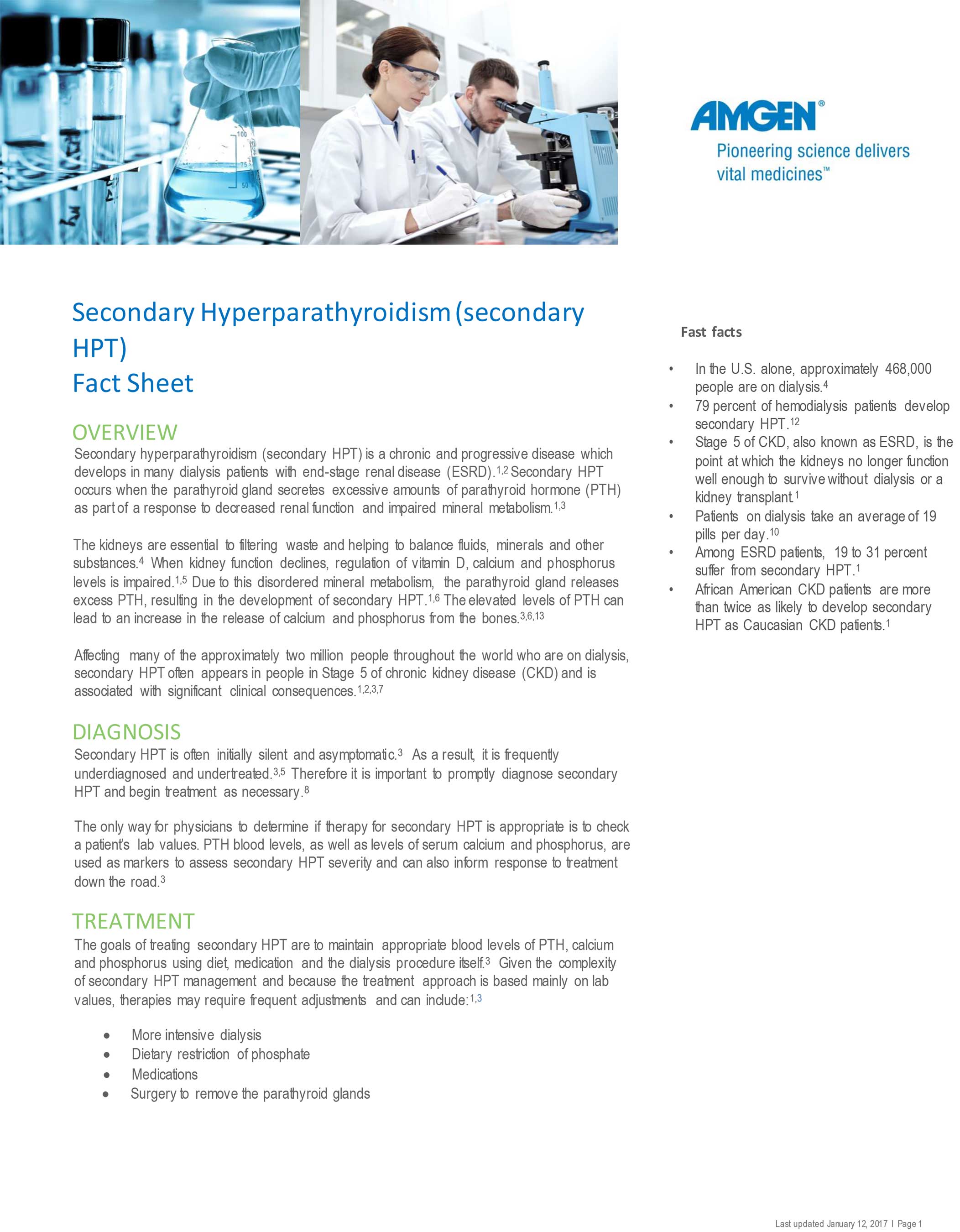 12 National Kidney Foundation. Parathyroid Hormone and Secondary Hyperparathyroidism in Chronic Kidney Disease. Available at: https://www.kidney.org/sites/default/files/02-10-4899_GB_SHPT-PTH_v8.pdf. Accessed December 20, 2016.