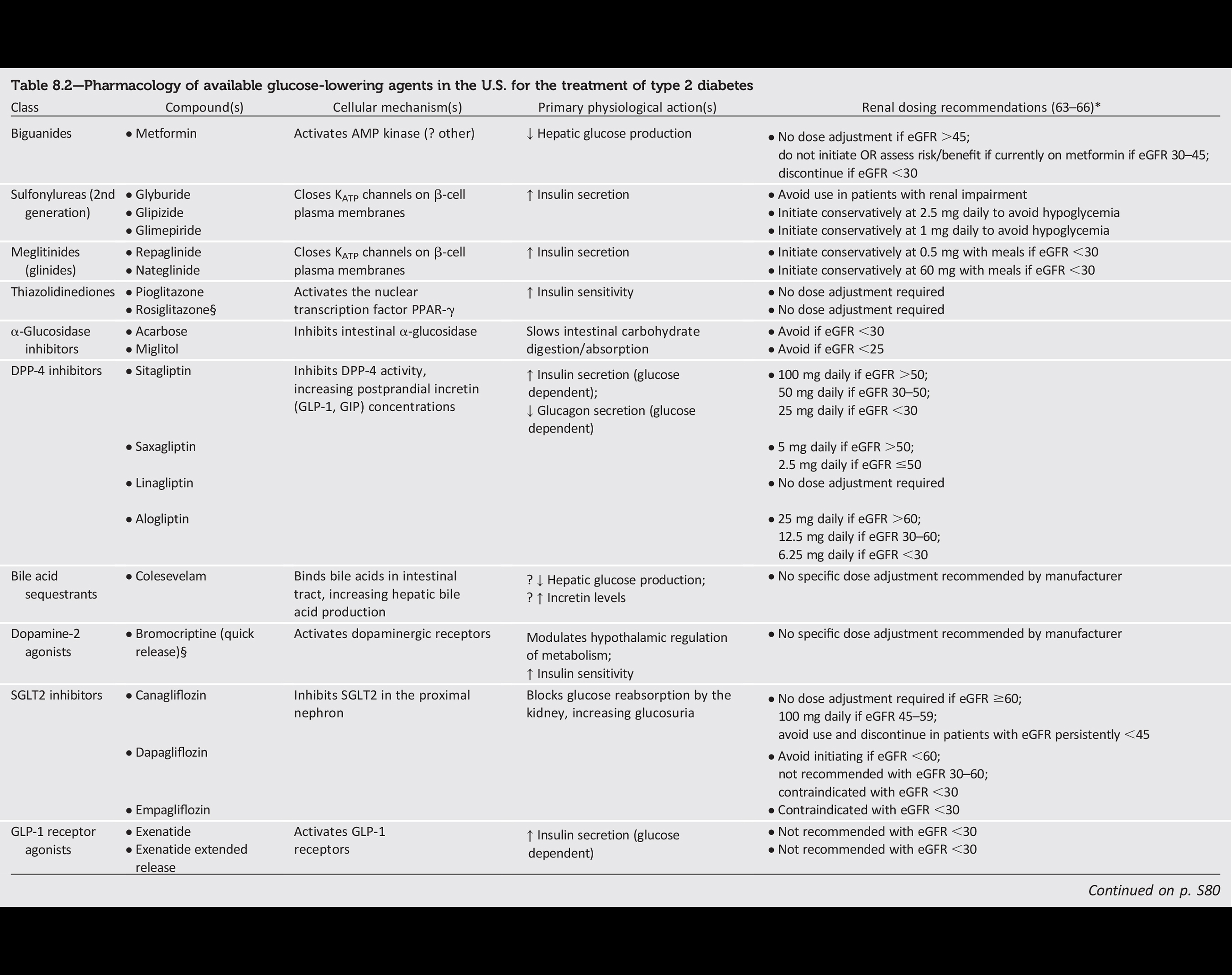 Table 8.2 - Parmacology of available glucose-lowering agents in the U.S for the treatment of type 2 didabetes