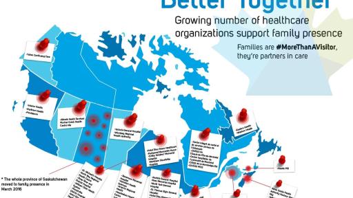 A bold healthcare initiative by the Canadian Foundation for Healthcare Improvement (CFHI) is revolutionizing the relationship between healthcare providers, patients and family members – by including families as partners in care. What started as a grassroots movement launched under the banner of Better Together is now sweeping the country; 50 Canadian hospital and healthcare organizations, including the provinces of Saskatchewan, New Brunswick and Prince Edward Island are now reviewing or have already adopted family presence policies – including 24/7 visiting hours.