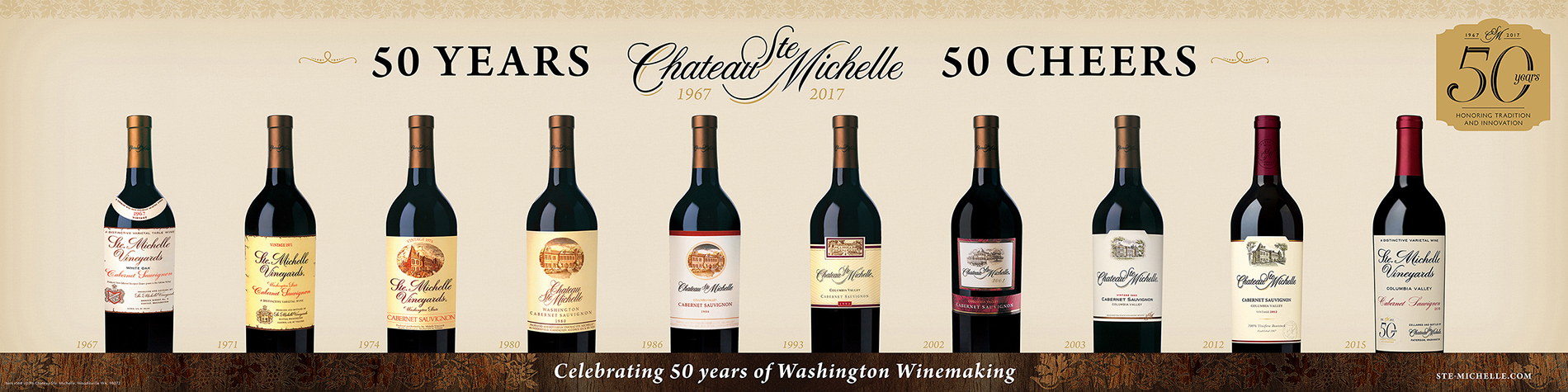 Please visit ste-michelle.com for event information and updates. Follow Chateau Ste. Michelle on Instagram: @chateaustemichelle, Facebook: Ste. Michelle, Twitter: @stemichelle and the conversation at #CSM50. Additional resources for press are available upon request including a video, visual timeline, historical images and media kit.