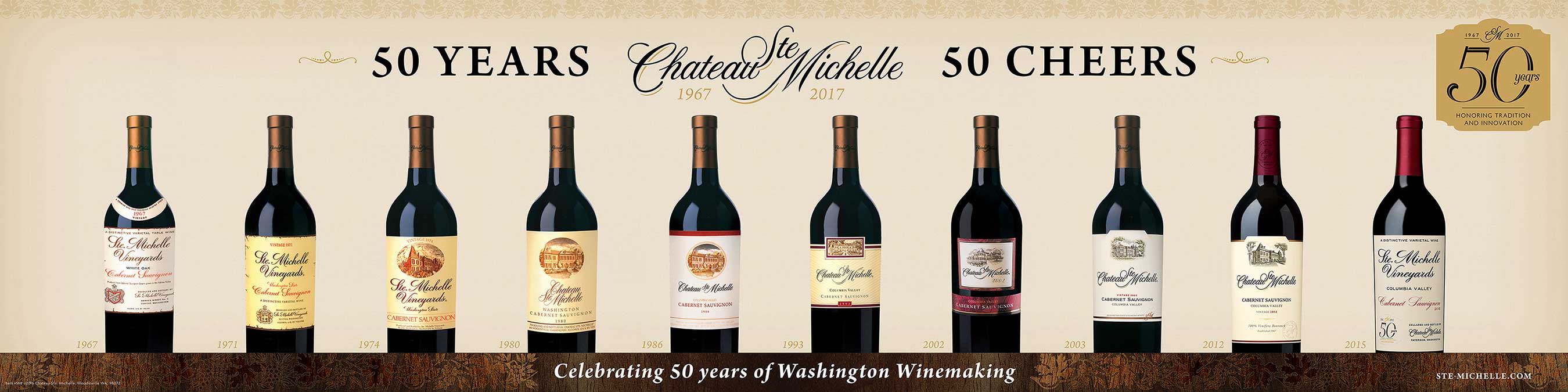 Chateau Ste. Michelle, Washington state’s founding winery, announced today it will celebrate its 50th Anniversary year with a commemorative Cabernet bottling, special events, library wine releases, a visitor center expansion, its famous Summer Concert Series and other programs throughout 2017.