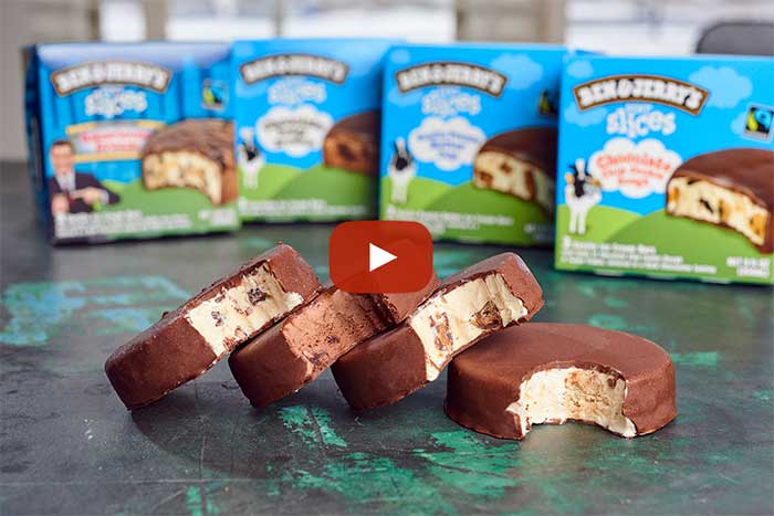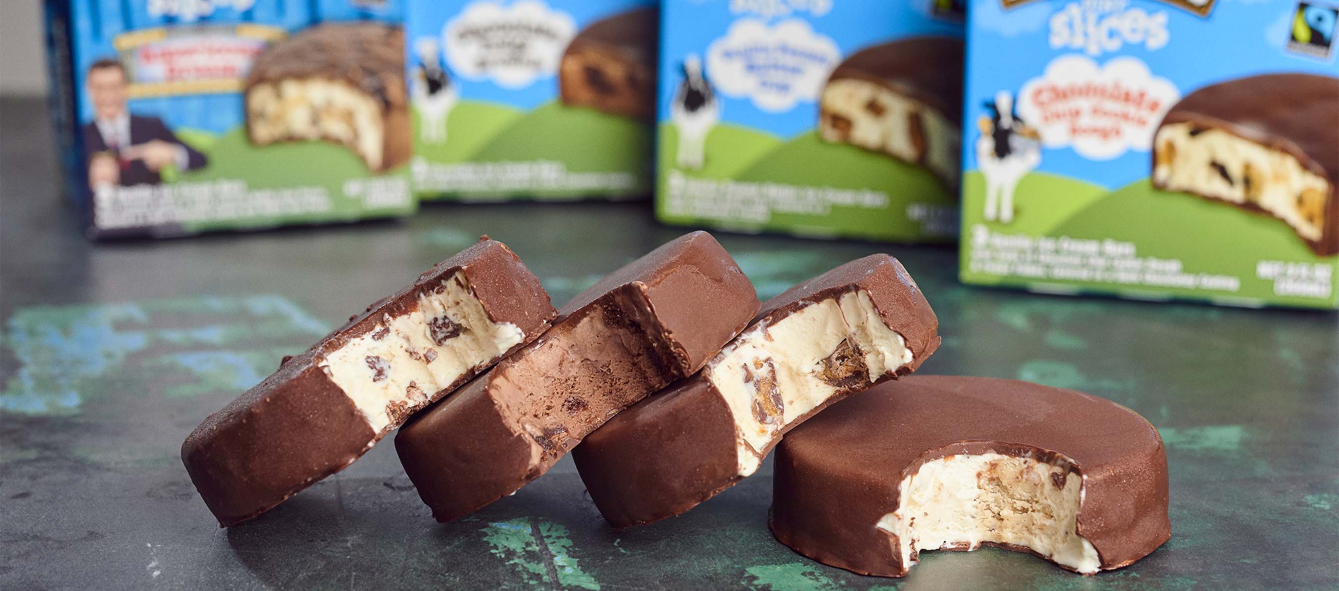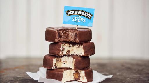 Spoon and bowl manufacturers around the world are taking note of Ben & Jerry’s newest innovation. Pint Slices, inspired by the very best part of the pint, give fans a way to enjoy euphoric flavors, chunks and swirls in a round single serving that’s enrobed in a decadent chocolatey coating. It’s a to-go order of ice cream goodness that’s easy to take on the road, and hard to resist.