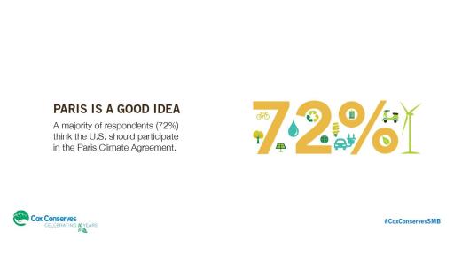 The Cox Conserves Sustainability Survey, commissioned by Cox Enterprises, is a national study that examines sustainability perceptions of leaders at small and medium-sized businesses (SMBs). The 2017 Survey was conducted in August among a national sample of 509 decision-makers of businesses with less than 1,000 employees. The Survey is part of the Cox Enterprises’ larger commitment to conservation and ongoing desire to further sustainable business practices. Cox Conserves, the company’s national sustainability program, is celebrating its 10th anniversary.