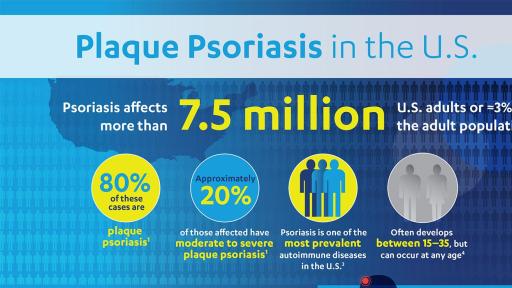 Psoriasis is a chronic, autoimmune inflammatory disorder that results in the overproduction of skin cells, characterized by raised, inflamed, red lesions, or plaques, which can cause physical pain.1 It is estimated that more than 7.5 million Americans live with the disease.2 Approximately 80 percent of those affected with psoriasis have mild to moderate disease, while 20 percent have moderate to severe plaque psoriasis.2
