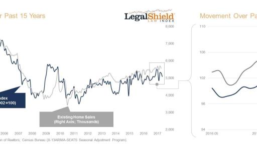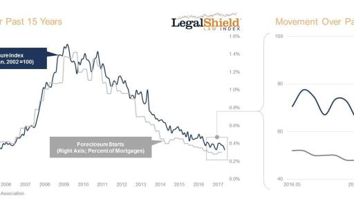 ADA, OKLAHOMA (June 8, 2017) For the first time, the LegalShield Law Index—launched today—provides a forward-looking snapshot of the economic and financial status of U.S. households and small businesses. The Index is made up of five indices, including the LegalShield Consumer Financial Stress Index, LegalShield Housing Activity Index, LegalShield Bankruptcy Index, LegalShield Foreclosure Index, and the LegalShield Real Estate Index. Each index relies on LegalShield’s unique and proprietary database of actual member demand for and usage of legal services to predict the health of the U.S. economy.