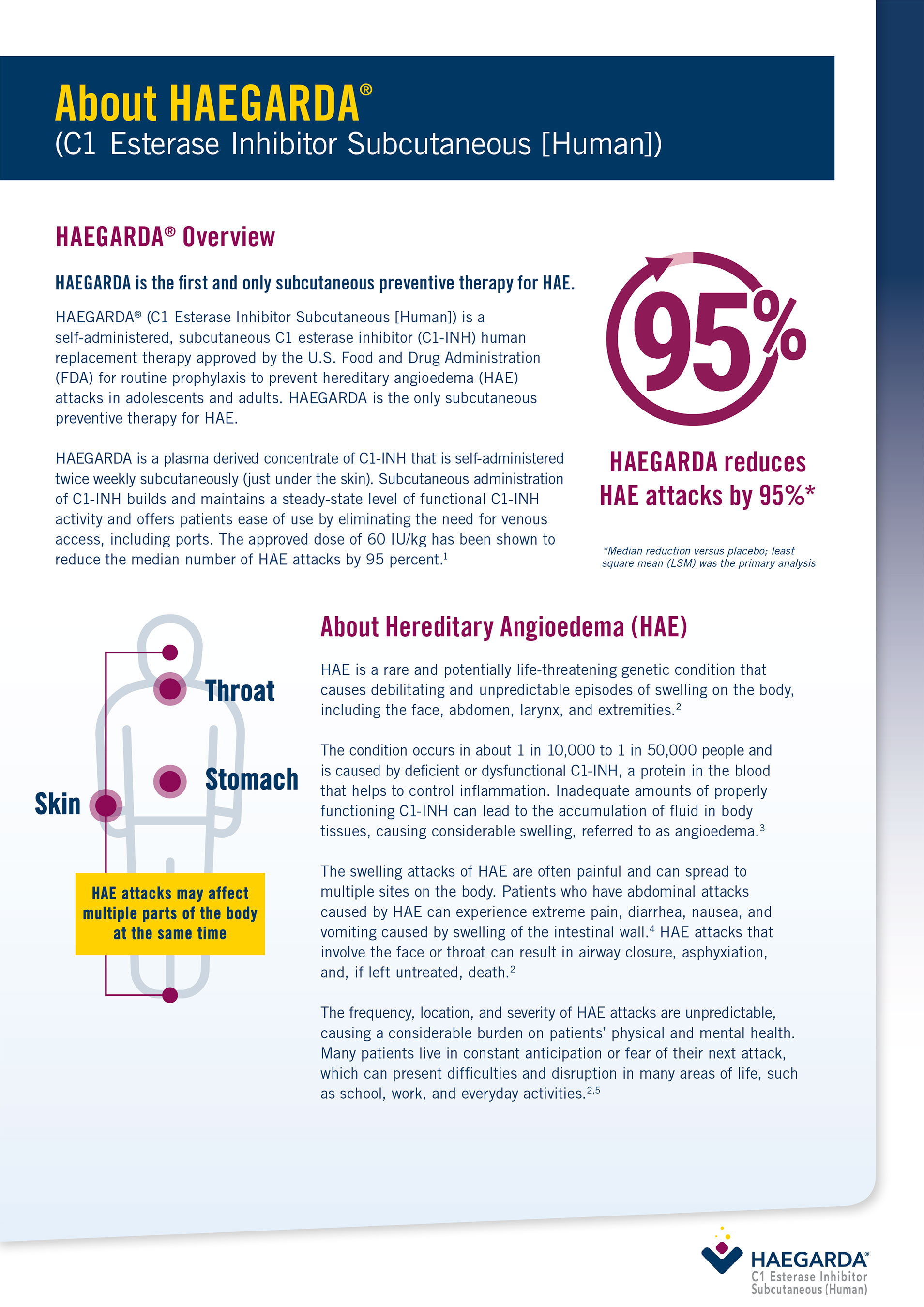 Full HAEGARDA Prescribing Information can be found at www.HAEGARDA.com.