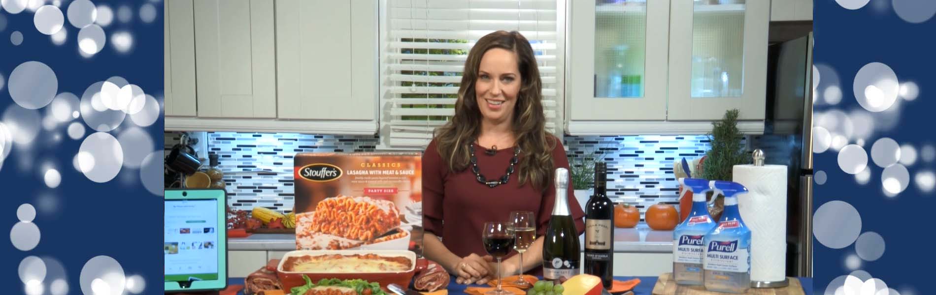 - Serve Festive Food: The perfect meal for holiday entertaining is lasagna and the party size Stouffer's Lasagna with Meat and Sauce is a family favorite. It makes about 12 servings and you'll love not dealing with prep and cleanup! It is made with vine-ripened tomatoes, freshly made pasta, and real mozzarella; so you can feel good about feeding it to your family and guests. To learn more head to Stouffers.