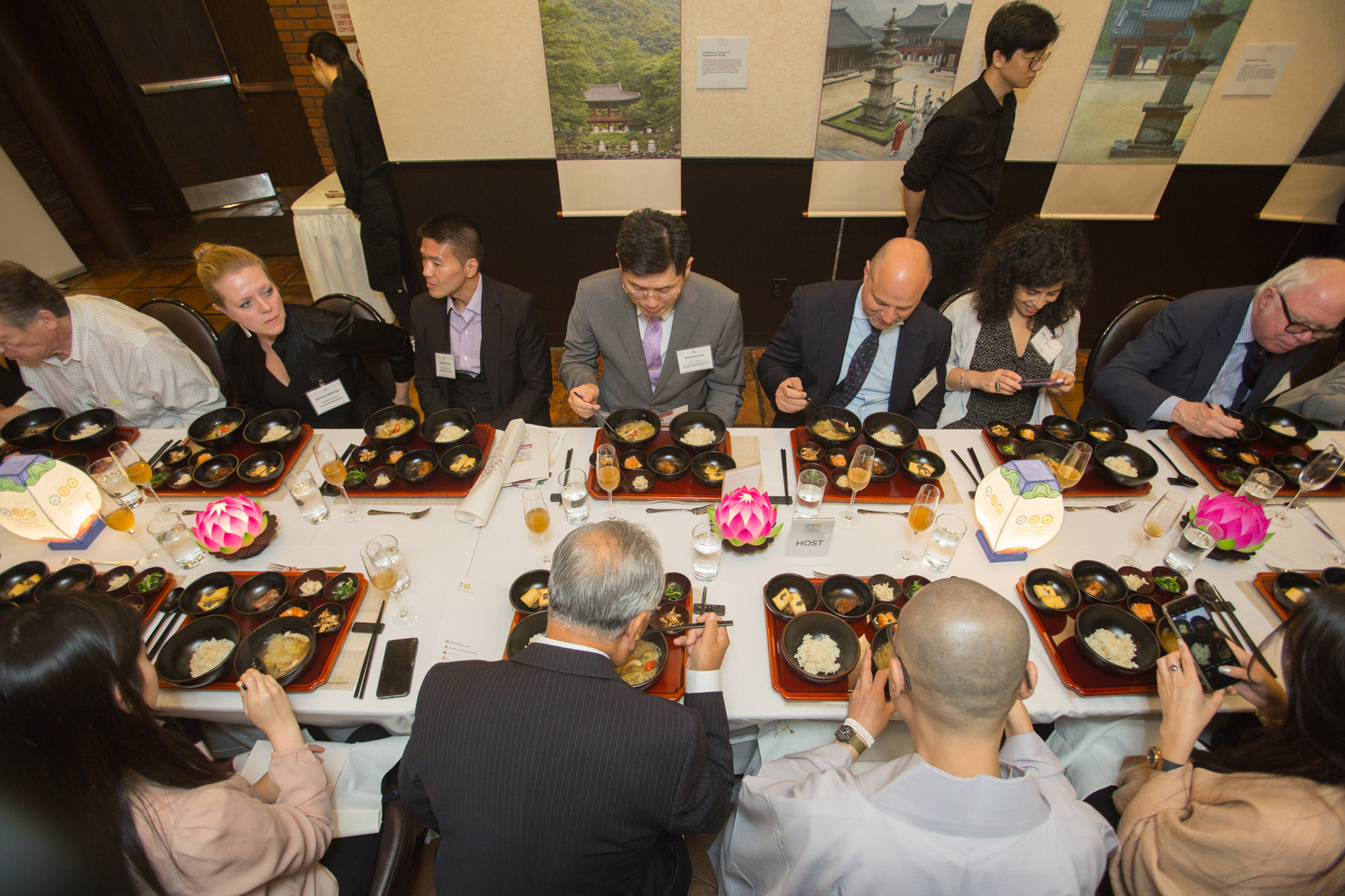 On the other side of the event, people from government, business, arts and culture, media and prominent chefs attended the temple food banquet. A variety of temple foods such as porridge with potato matzo balls, buckwheat crepes, seasoned were airlifted from Gangwon-do Province.