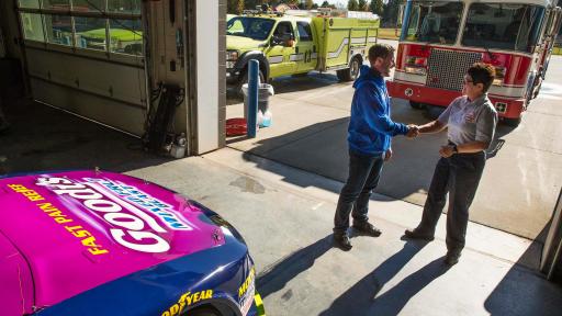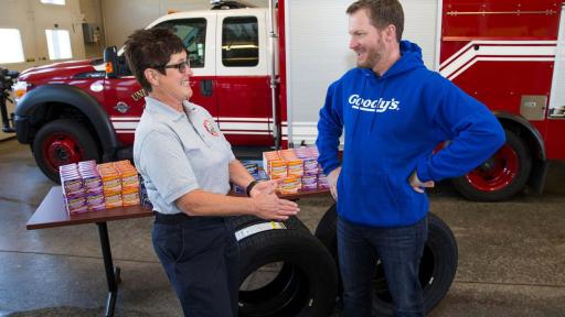 “This is an incredible surprise and I’m so overwhelmed,” said Homme. “I can’t believe that they brought the thrill of experiencing a pit stop to our fire station! Thank you so much to Dale Jr. and Goody’s® for making this happen. I can’t wait to enjoy these new tires.”