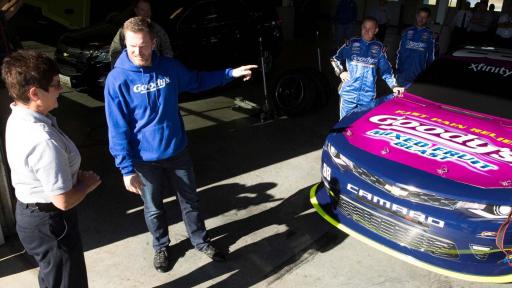 CHARLOTTE, N.C., October 27, 2017 — Today, Goody’s® Powder partnered with Dale Earnhardt Jr. to surprise a local Charlotte fan with some “Fast Relief.” Kim Homme, a retired 25-year captain of the Charlotte Fire Department and longtime Dale Jr. fan, was treated to a special Goody’s® Fast pit stop experience along with a new set of Goodyear tires for her vehicle.