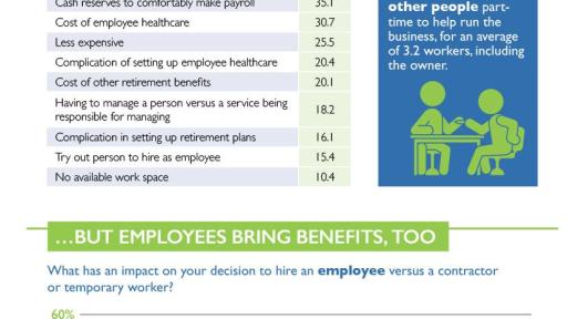 - Business owners reported that top reasons to hire an employee include consistency of work (57%), followed by a full-time worker’s commitment to the company, vision and brand (53%).