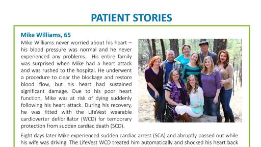 The LifeVest WCD continuously monitors the patient’s heart and, if a life-threatening heart rhythm is detected, the device delivers a treatment shock to restore normal heart rhythm. LifeVest gives physicians time to optimize medical therapy and assess a patient’s long-term risk for sudden death. LifeVest allows patients to return to their common activities of daily living, while having the peace of mind they are protected from SCD.