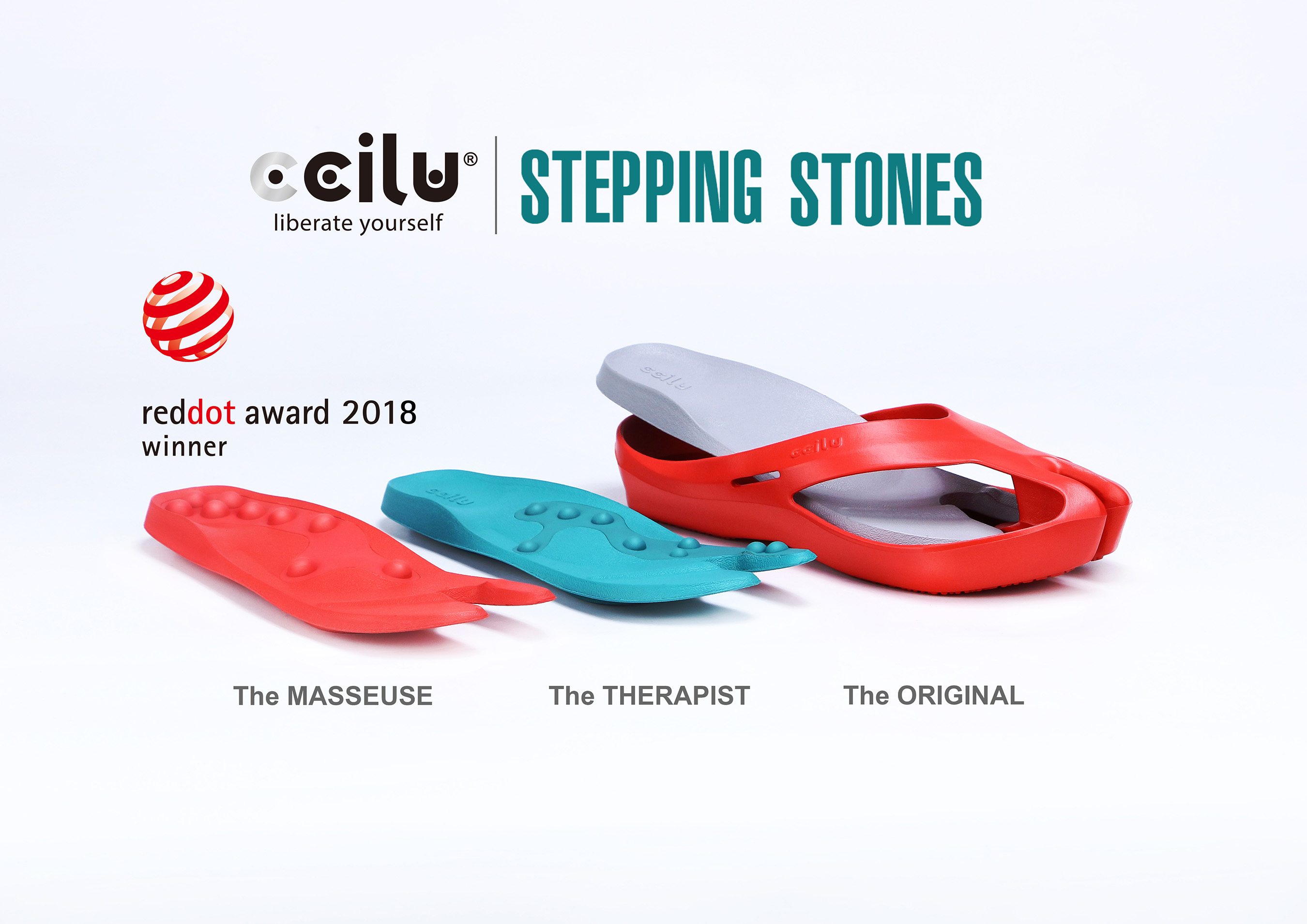 Ccilu Footwear’s Stepping Stone massage sandal has been honored with this year’s Red Dot Design Award for Fashion & Lifestyle accessories. Inspired by traditional oriental medicine, Ccilu’s Stepping Stone massage sandals were developed with acupressure pods that improve circulation and wellness simply by wearing them. Its three changeable insoles are: THE ORIGINAL, THE THERAPIST and THE MASSEUSE. The Red Dot Design Award is the largest and most renowned design competition in the world. Stepping Stones will be available for purchase Summer ‘18, on www.Ccilu.com and other on-line and off-line retailers.