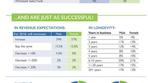 - Women-owned businesses reported nearly the same amounts of anticipated revenue growth in 2018. 57% of women entrepreneurs predicted an increase in revenue growth, while 15.5% predicted revenues would stay the same, and 9% predicted a decrease in revenues. In comparison, 59% of male entrepreneurs predicted an increase in revenue growth, while 15.5% predicted revenues would stay the same, and 9.5% predicted a decrease in revenues.