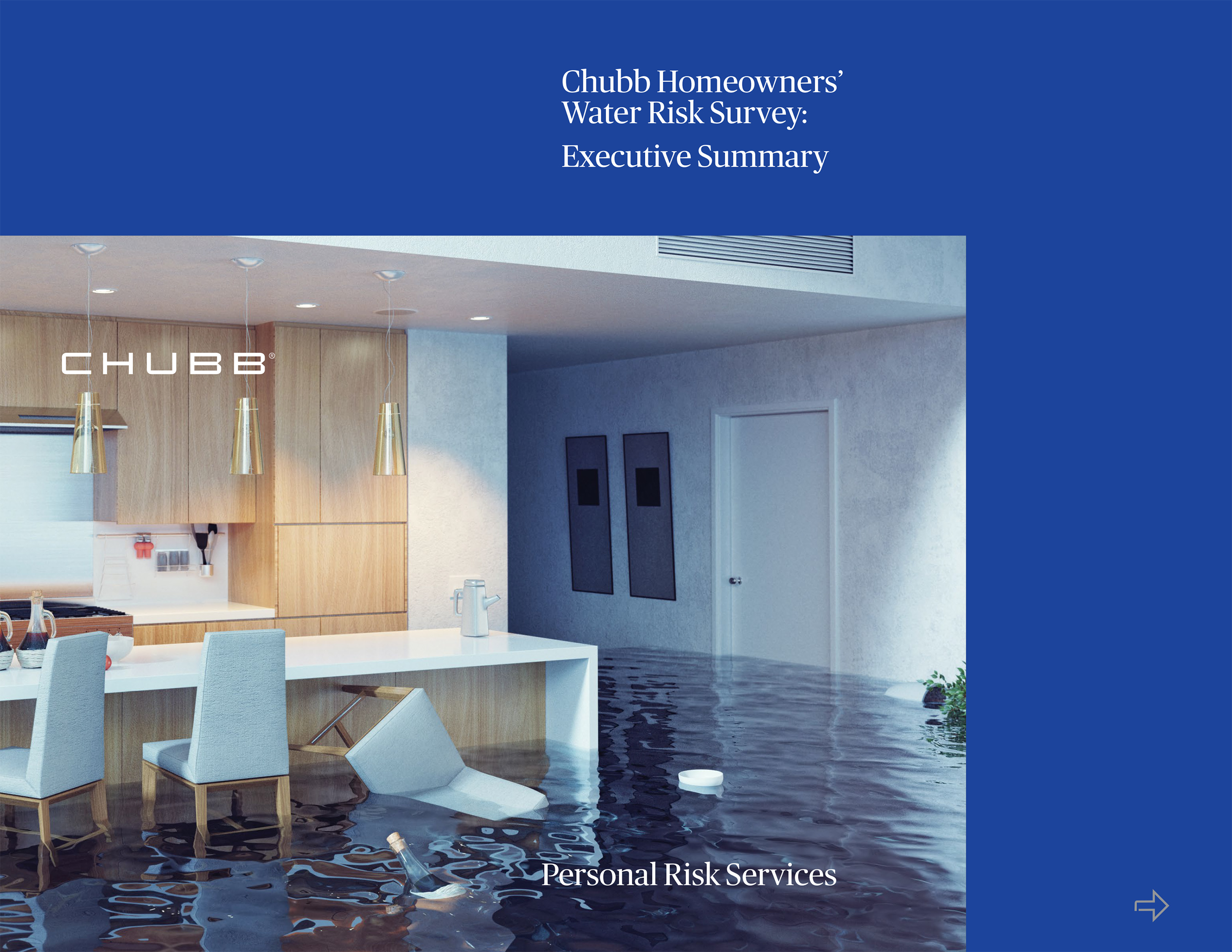 The 2018 Water Risk Survey is the second survey by Chubb measuring homeowners’ approaches and behaviors toward internal water leak detection and the first survey focusing on external water threats. Conducted by Research Now SSI, a leading global provider of first-party consumer and professional data, the online survey was fielded between May 4-16, 2018. The results are based on 1,204 completed surveys, of which a quarter (25%) of respondents each came from the middle class ($50,000-$99,999 in annual household income), upper middle class ($100,000-$499,999), mass affluent ($500,000-$999,999) and high-net-worth ($1,000,000 or more).