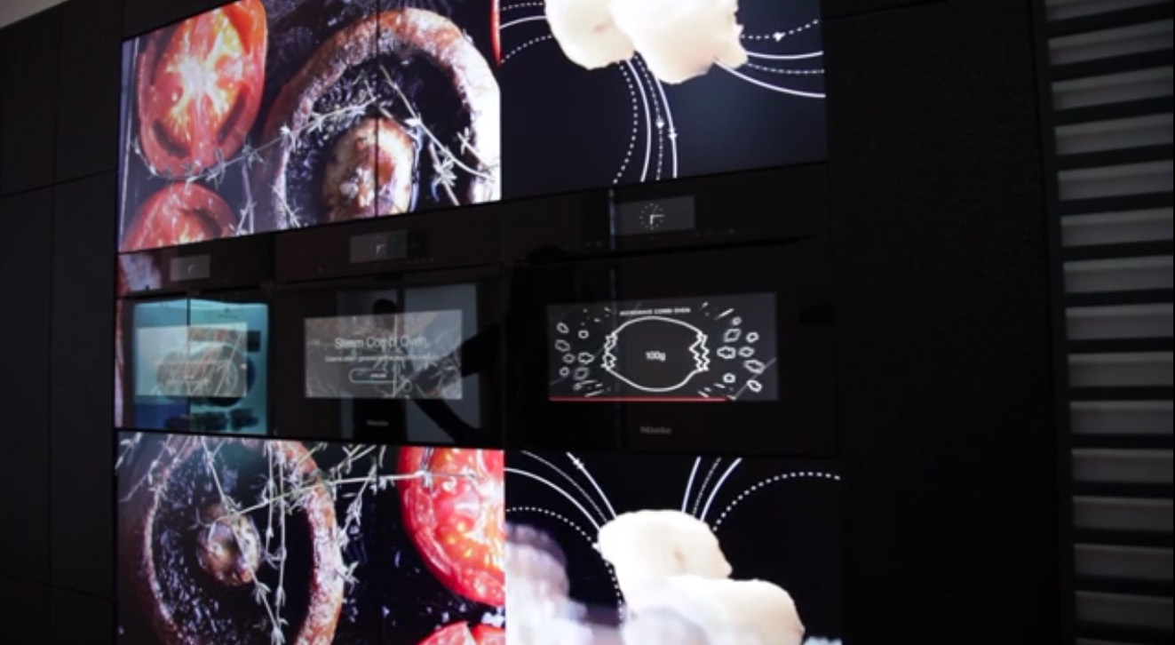 Various digital elements further induce interaction with products or provide additional information. At the new Swiping Cooktop Screen, it is possible for example to perform virtual cooking and to experiment with the various Miele induction cooktops on display. The 46" touch screen display on the M-Touch Wall shows the product range with the eponymous technology in full size and illustrates the function of the controls which simplify the operation of numerous built-in appliances. New, too, is the Miele CareCollection Consumables Wall. With the aid of short videos, this feature informs visitors about the various Miele cleaning and care products. Videos are launched by scanning items using the NFC scanner provided.