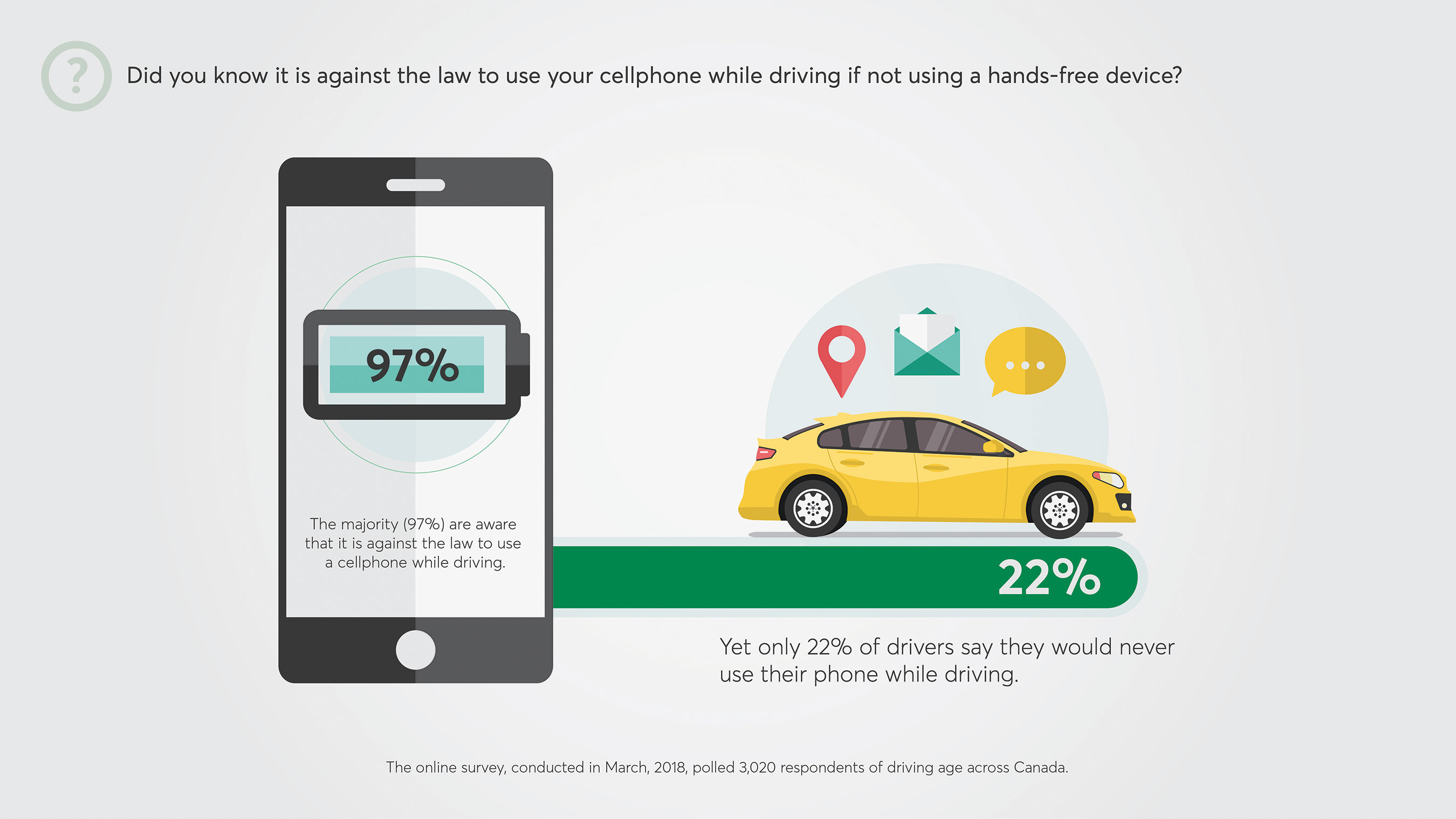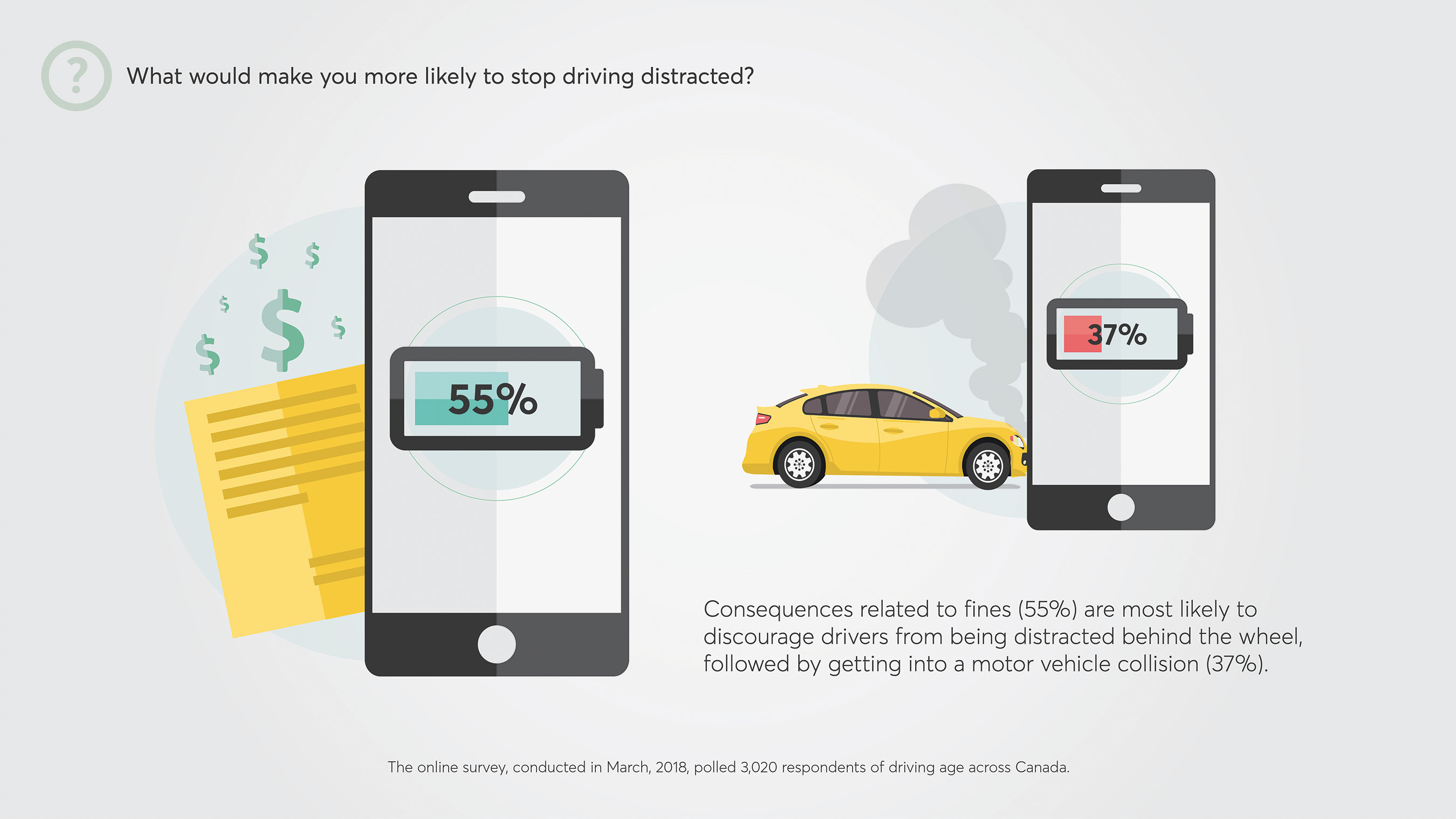 Overall, Canadians ranked distracted driving as the second largest risk factor when they take to the road, behind alcohol impaired driving. So, what will change distracted driver behaviour?