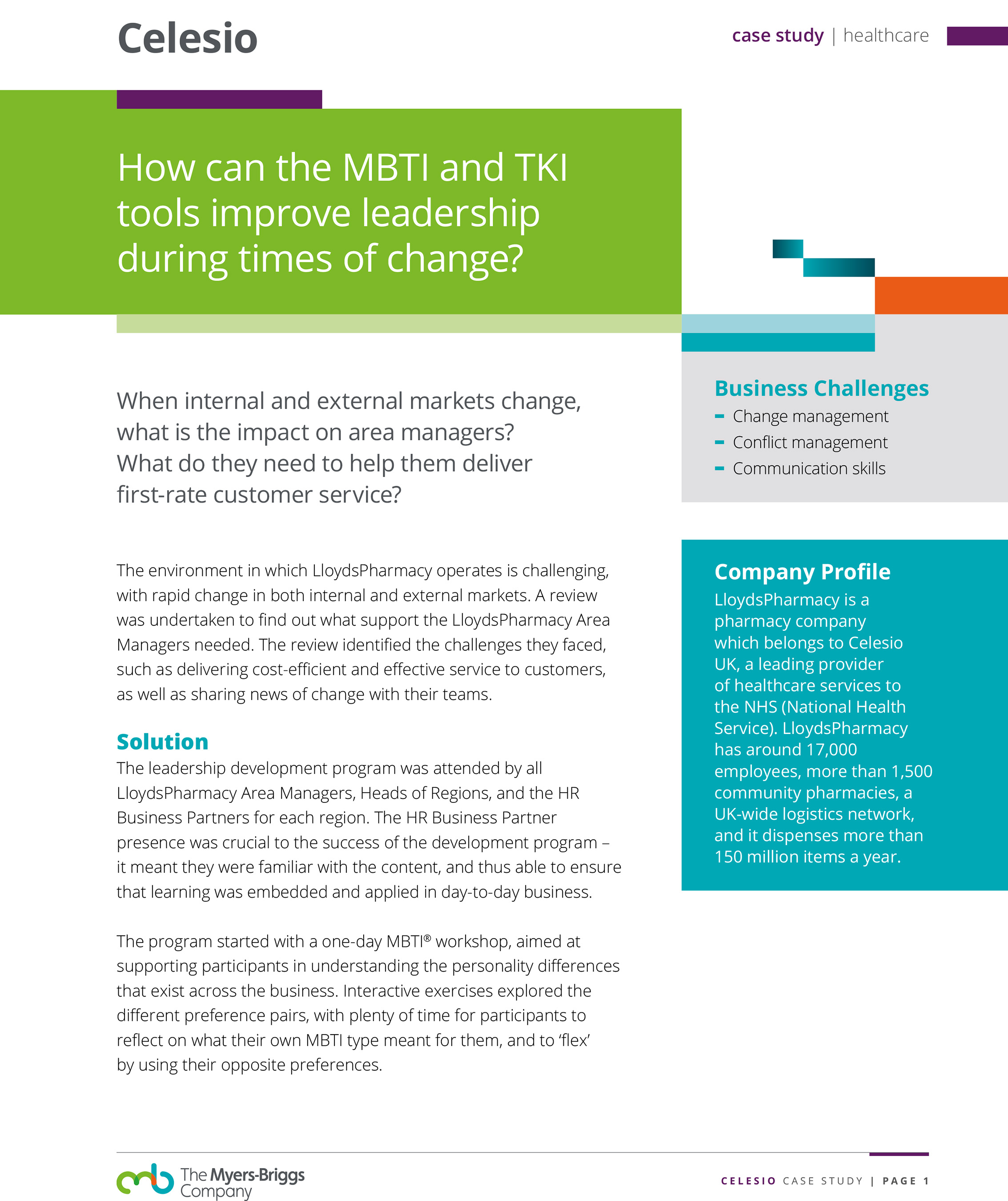 With comprehensive training programs and solutions, online systems to keep you organized and on track, unrivaled global professional services, and a portfolio of recognized, psychometrically validated assessments, The Myers-Briggs Company brings together people, helping companies achieve their goals and make purpose-driven contributions.