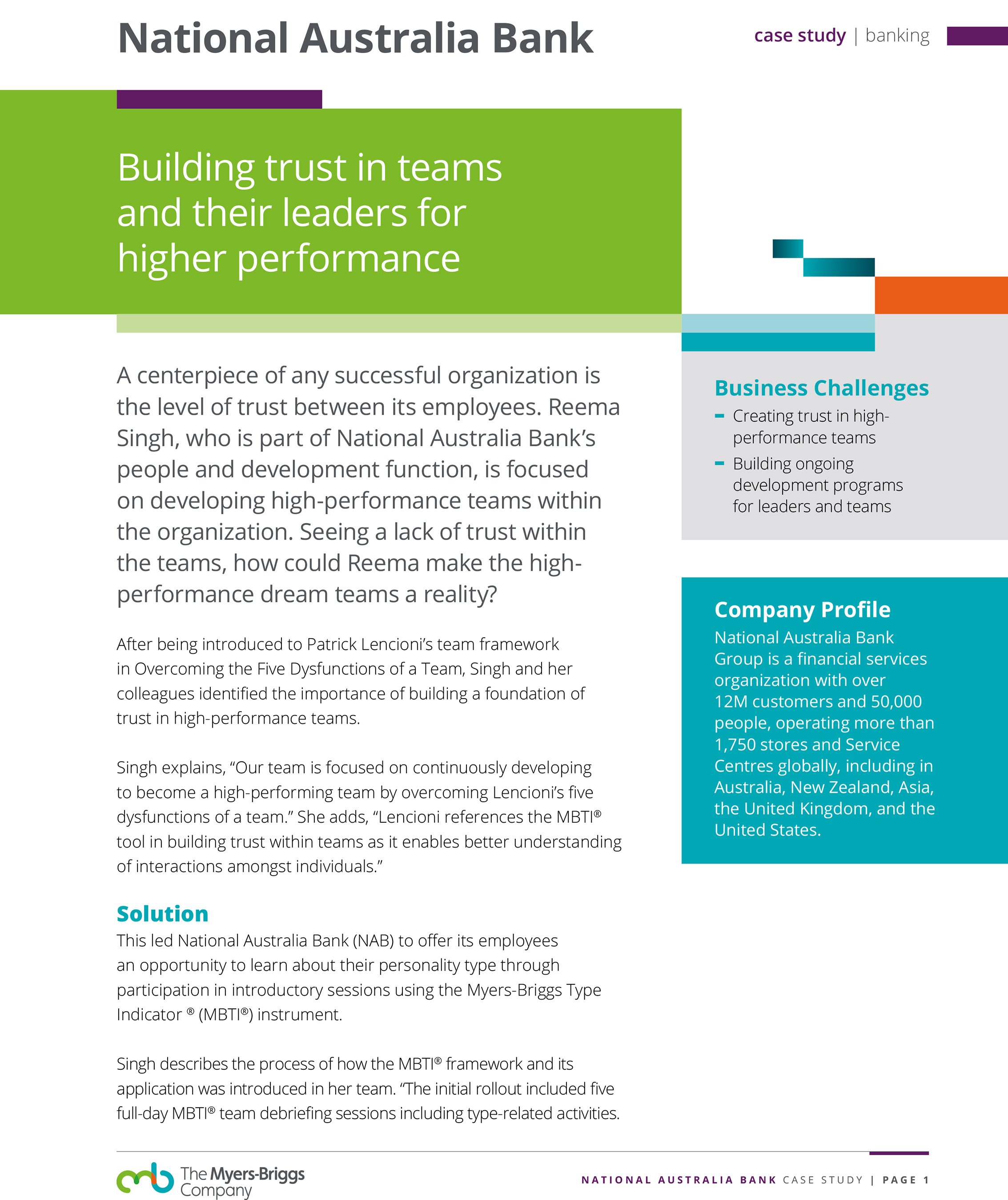 “The Myers-Briggs Company has helped our teams adapt to new realities, exchange valuable feedback, and collaborate to drive innovation,” said Ford Motor Company’s Chief Learning Officer Bridgette Morehouse.