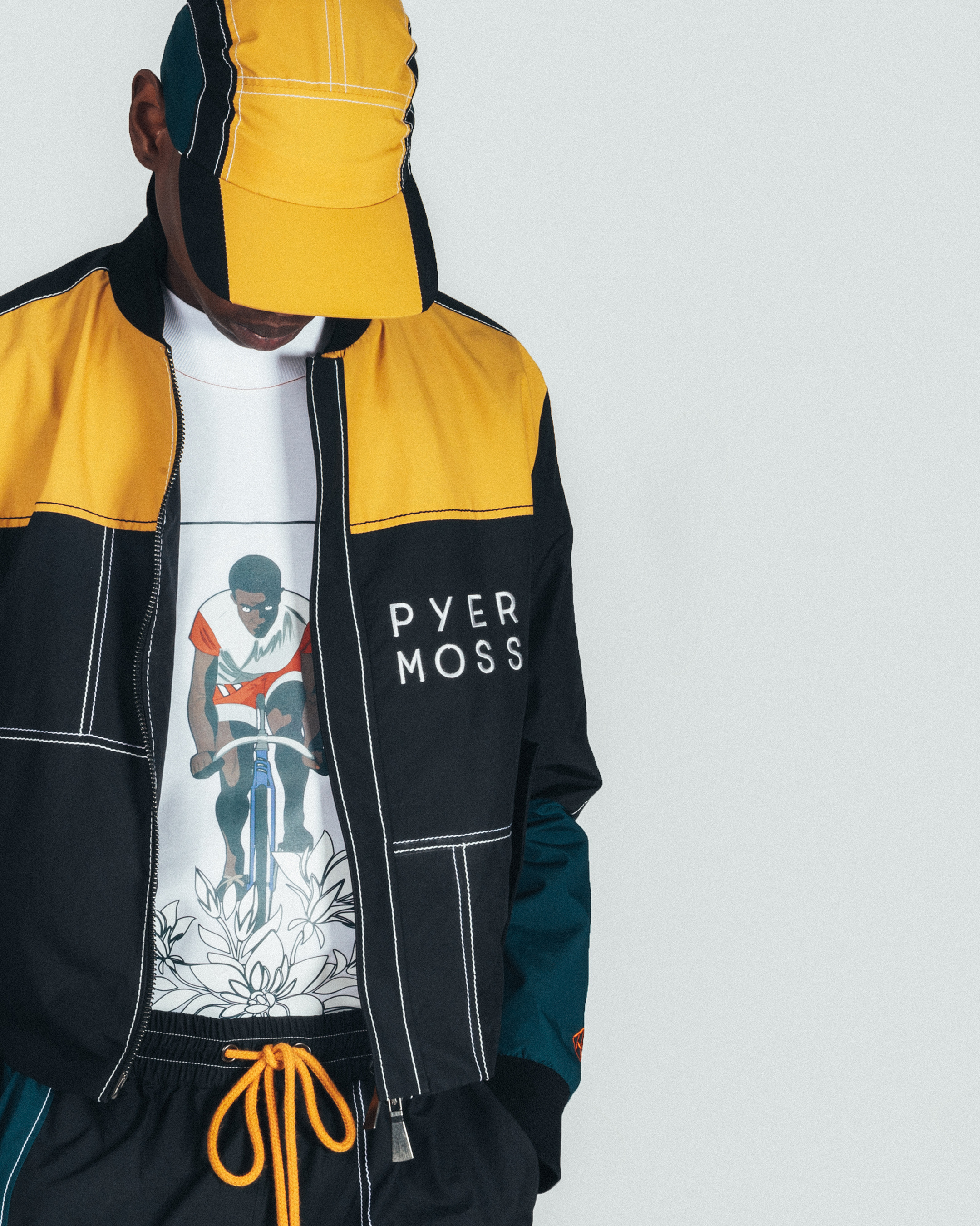 Fashion designer Kerby Jean-Raymond of Pyer Moss revisits his original motocross and cycling-inspired line to release a capsule collection for Hennessy. The collection highlights similar themes still relevant today, 140 years after Taylor was born, and includes a cycling cap, graphic tee with custom artwork, parachute jogger pants, a track-style sweatshirt and a nylon bomber jacket.