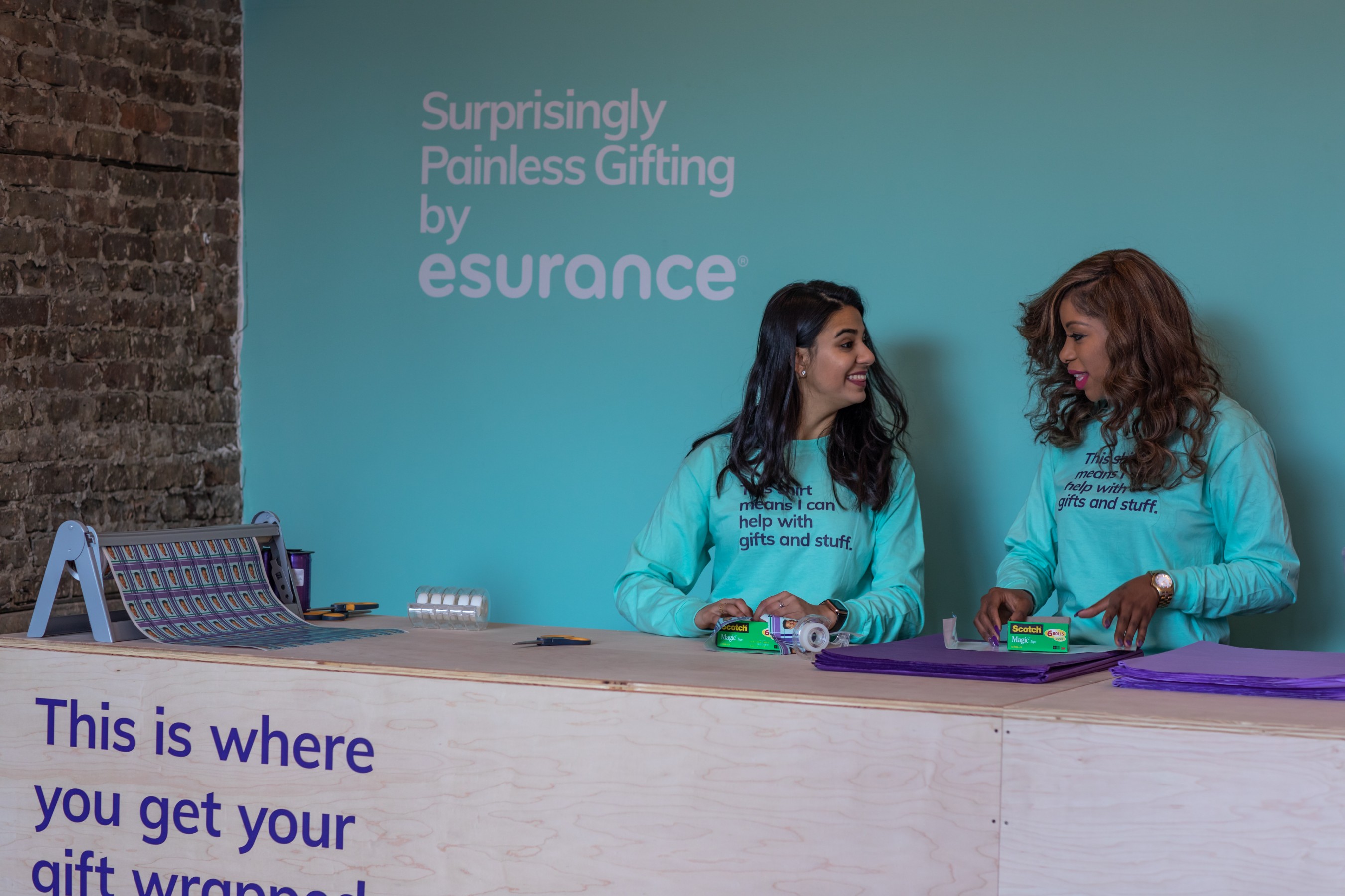 We also know that wrapping gifts can be a pain. So Esurance is surprising holiday shoppers in Chicago today at a pop-up with free packaging for their gifts using the Dennis Quaid wrapping paper. New Yorkers can stop by a second pop-up experience at 61 W 23rd Street (btw 5/6th avenue), New York, NY 10010 in Flatiron; open Friday, December 14 from 9 a.m. to 9 p.m. ET.