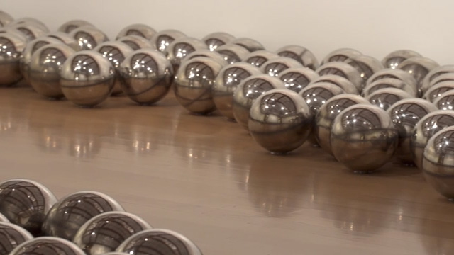 Yayoi Kusama’s seminal installation Narcissus Garden includes mirrored spheres displayed en masse to create a dynamic reflective field. It is one of the first works by the artist to explore the optical and psychological potential of the mirrored surface as a means of transcending the limits of the physical world, and it creates a participatory experience in which the viewer is cast as the subject of the work. Narcissus Garden originated in 1966, when the artist first participated, albeit unofficially, in the Venice Biennale. In Venice, Kusama installed the spheres on a lawn in front of the Italian Pavilion. Signs placed among them were inscribed with the word ‘Narcissus Garden, Kusama’ and ‘Your Narcissism for Sale.’ During the vernissage, Kusama, dressed in a kimono, remained with the installation, offering individual spheres for sale (at $2, or 1,200 lira a piece). This succès de scandale was both revolutionary – a comment on the promotion of the artist through the media and a critique of the mechanization and commodification of the art market – and deeply connected to history, evoking the Greek myth of Narcissus, who fell in love with his own reflection. Regarded as pivotal in Kusama’s career, Narcissus Garden anticipates many of the radical performances that would become a focus of her time in New York during the late 1960s, while encapsulating key aspects of Kusama’s wider practice – allusions to microscopic and macroscopic worlds, a preoccupation with the infinite and sublime – that remain compelling in her art to this day.