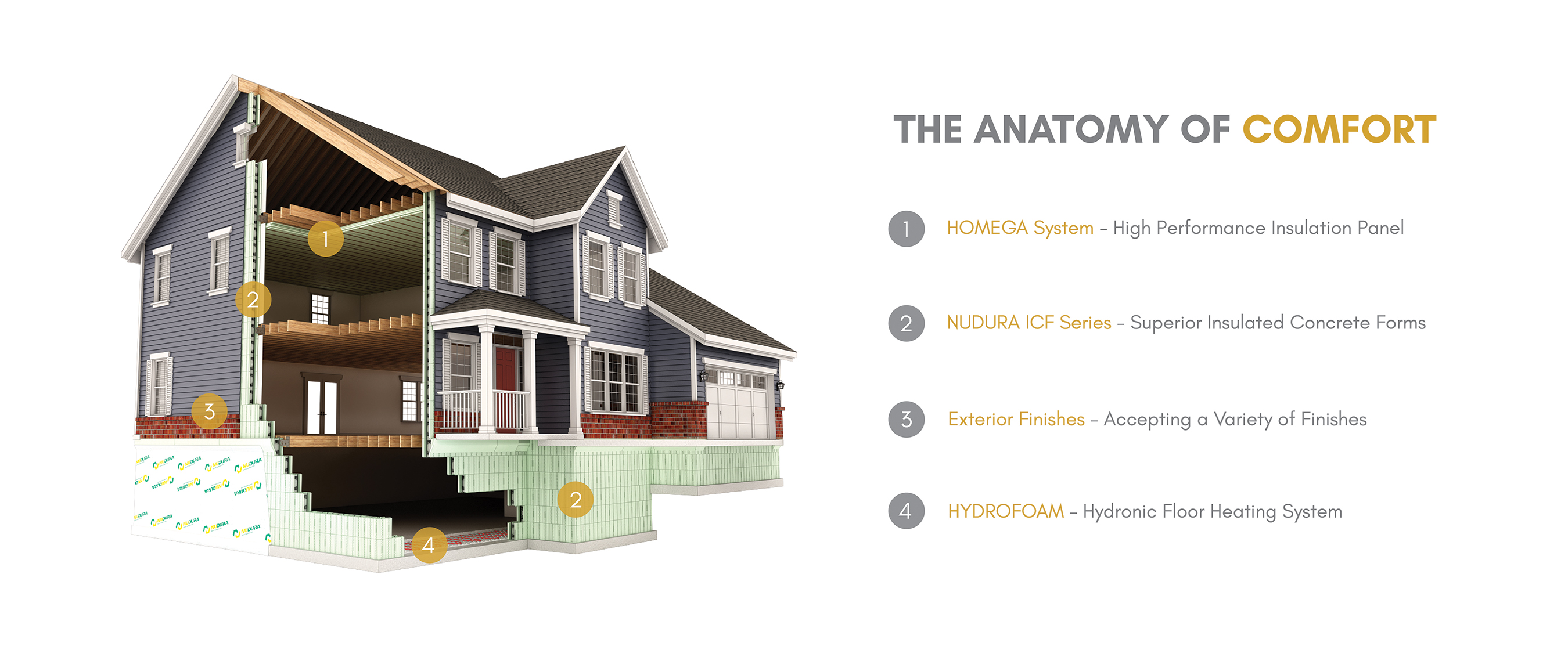 NUDURA energy efficient construction materials provide up to 58% energy savings compared to traditional building methods using wood