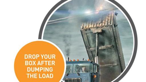 - Ensure that dump trucks on site drop their box after dumping the load. It’s good practice to have a raised box indicator installed in the truck to remind the driver the box is raised.