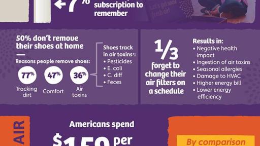 Poor indoor air quality can stem from chemicals, dust, mold or pollen, but a lesser known culprit lurks in an unexpected place — the soles of our shoes. Half of Americans do not remove their shoes upon entering the home. As a result, they bring unwanted and unnoticed toxins inside. According to the survey, only 36% of people know that removing shoes can help prevent outside toxins from polluting indoor air, including everything from E. coli, C. diff, fecal matter and pesticides that can travel on the soles of shoes into the house. For those who fail to remove their shoes upon entering the home, HVAC air filters can be the first line of defense against this indoor air pollution.