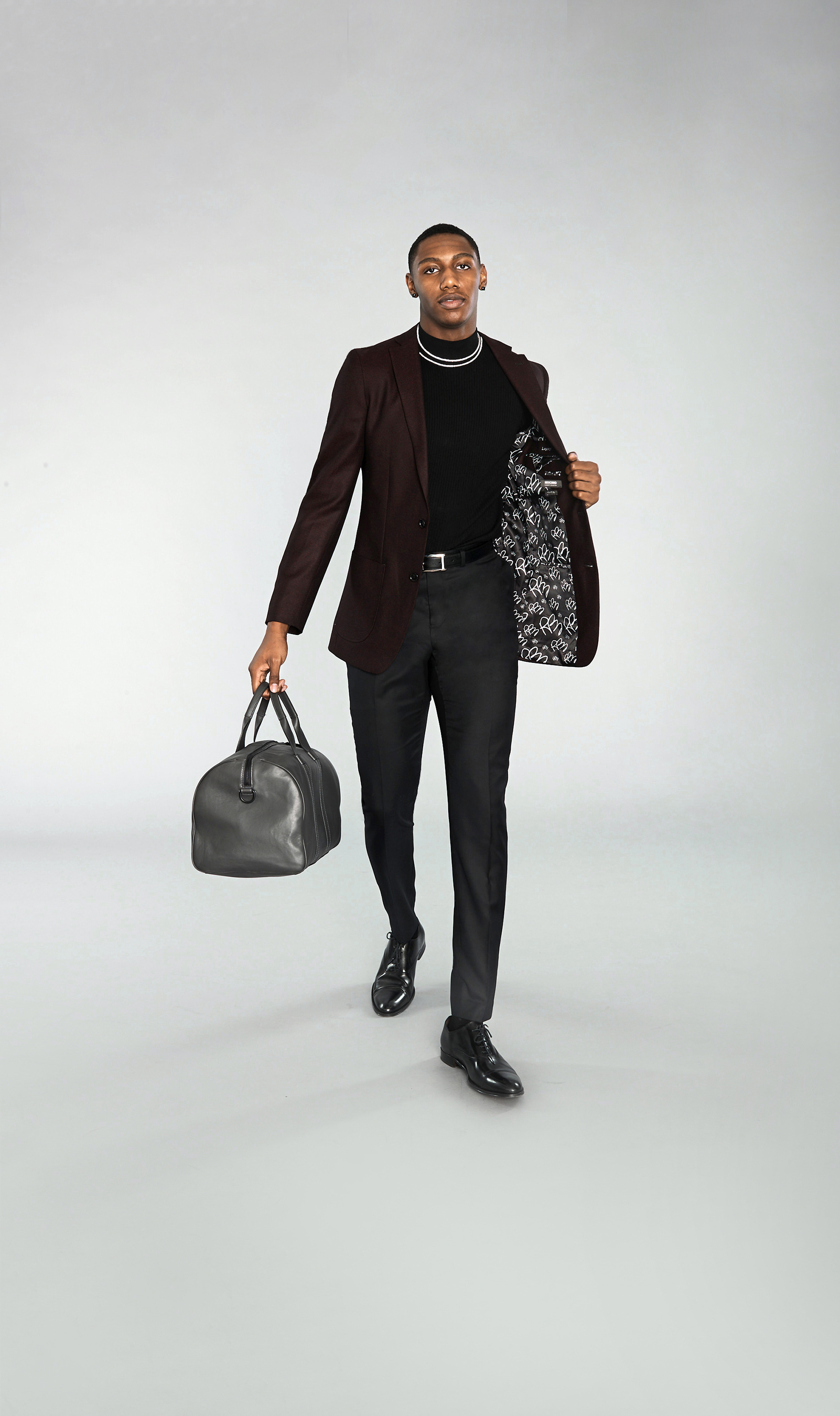 The RJ Barrett Collection features four bold suit fabrics and two blazer fabrics: Black Chalk Stripe Suit, Solid Red Suit, Windowpane Black Suit, Solid Steel Gray Suit, Tweed Gray Blazer and Tweed Burgundy Blazer. As with every INDOCHINO garment, each piece is fully customizable and made to the customer’s unique measurements for a one-of-a-kind, game-changing look.