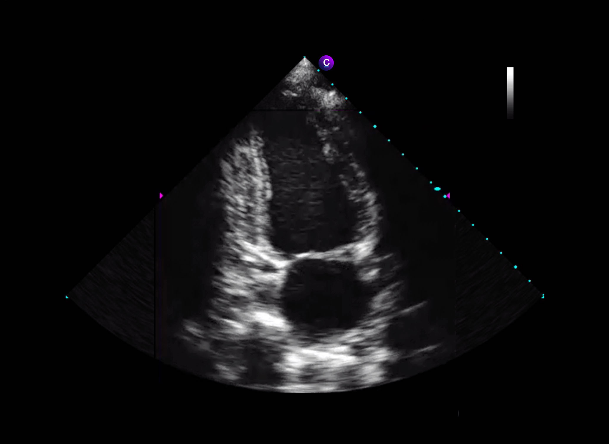 Caption Guidance successfully met all four primary endpoints, meeting the pre-specified criteria for study success by acquiring images of sufficient quality for specific clinical assessments. Namely, the RNs successfully acquired limited echo exams for qualitative visual assessments of left ventricular size: 98.8%, 95% CI [96.7, 100]; left ventricular function: 98.8% [96.7, 100]; right ventricular size: 92.5% [88.1, 96.9]; and pericardial effusion: 98.8% [96.7, 100].